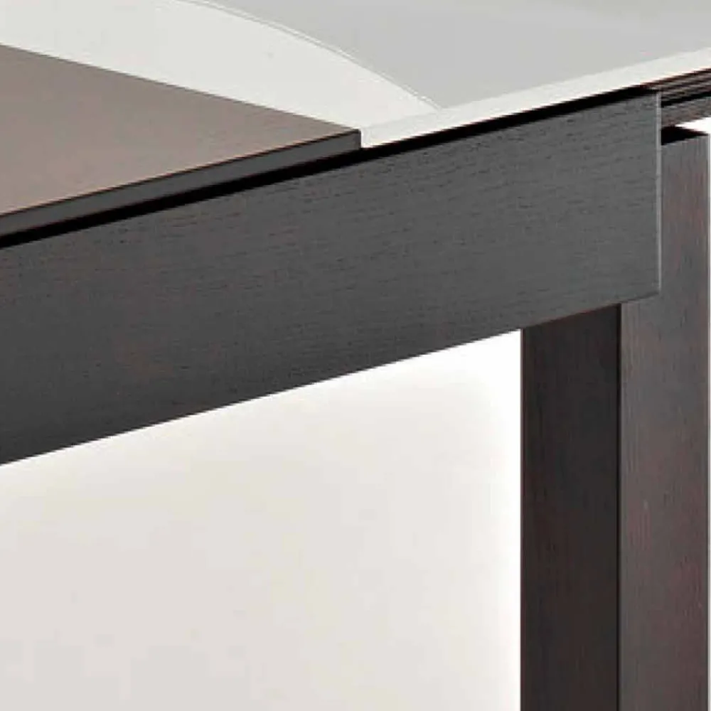 Als handgefertigtes Produkt ist es möglich, es anzupassen, indem Sie zwischen den verschiedenen Glasoberflächen für die Oberseite und verschiedenen Holzoberflächen für die Basis und die Verlängerungen wählen. Für weitere Informationen kontaktieren Sie uns über das entsprechende Formular „Informationen anfordern“.