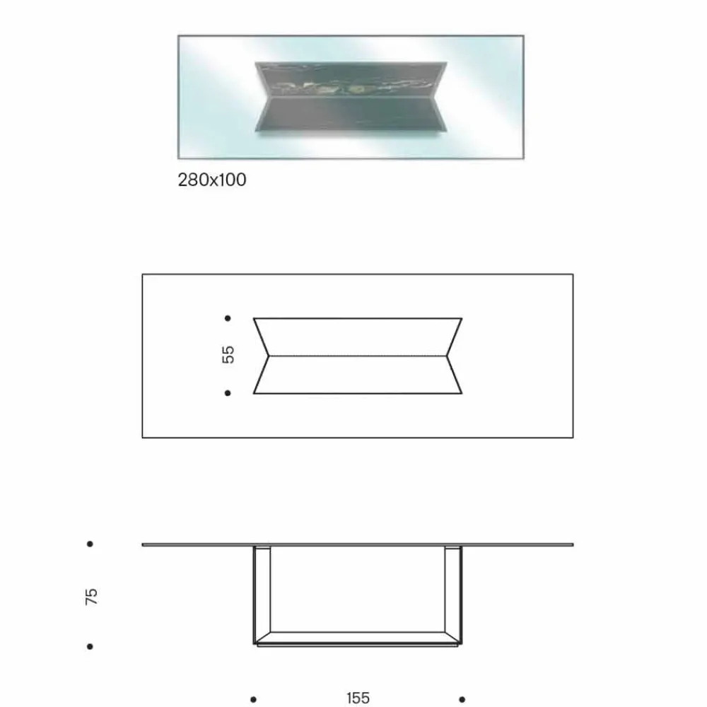 - L 280 x P 100 x H 75 cm;