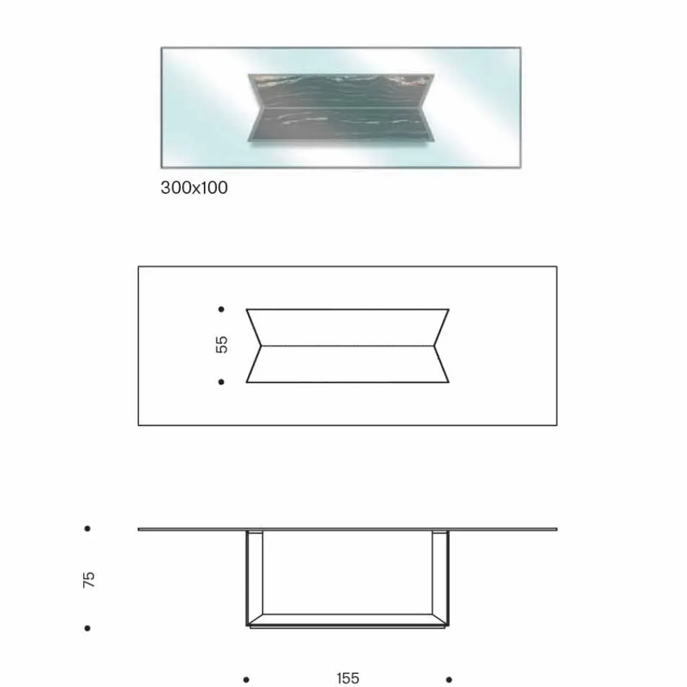 - L 300 x P 100 x H 75 cm;