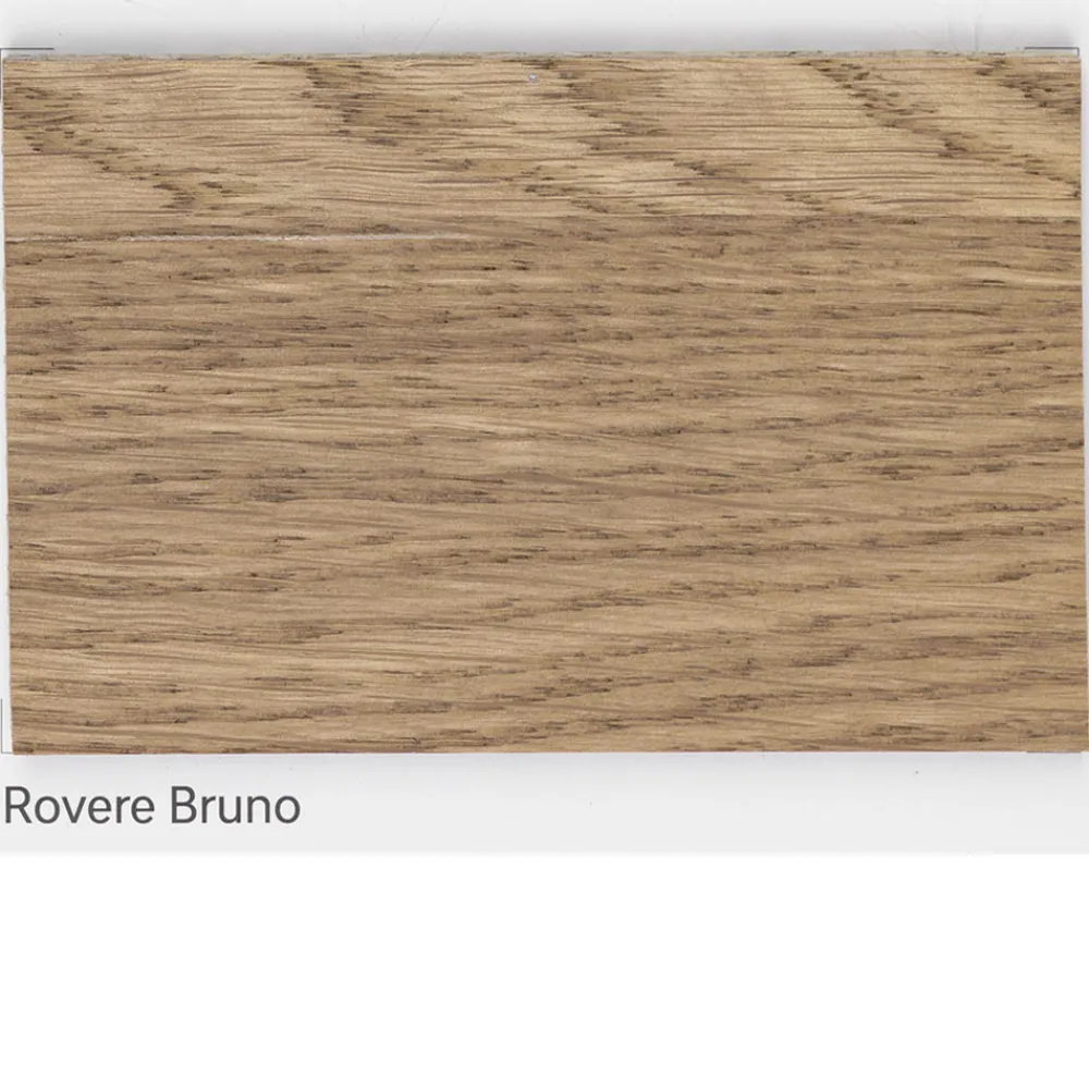 Die Platte dieses Tisches ist in brauner massiver Asteiche furniert und sein Fuß ist in extra weißem Glas .