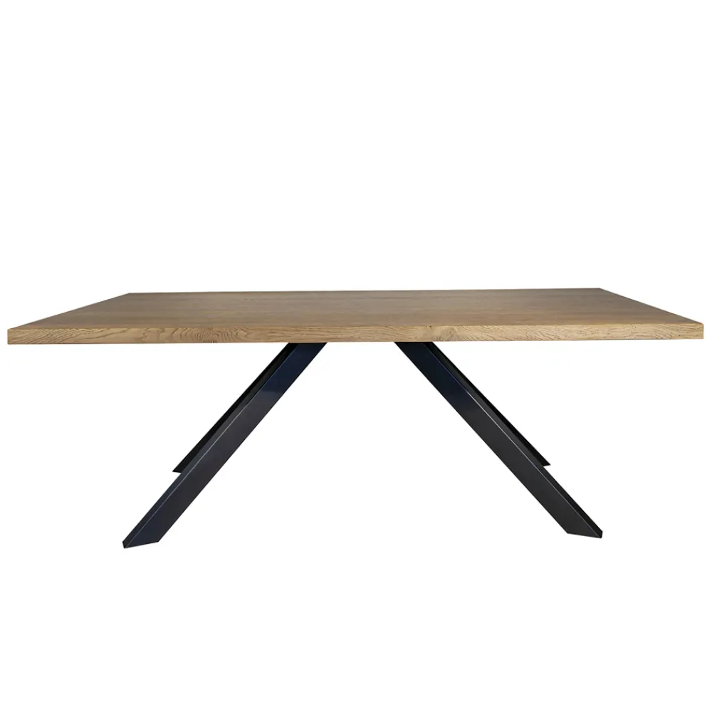 Holztisch aus entrindetem, geknotetem Eichenfurnier und Metallgestell Made in Italy.