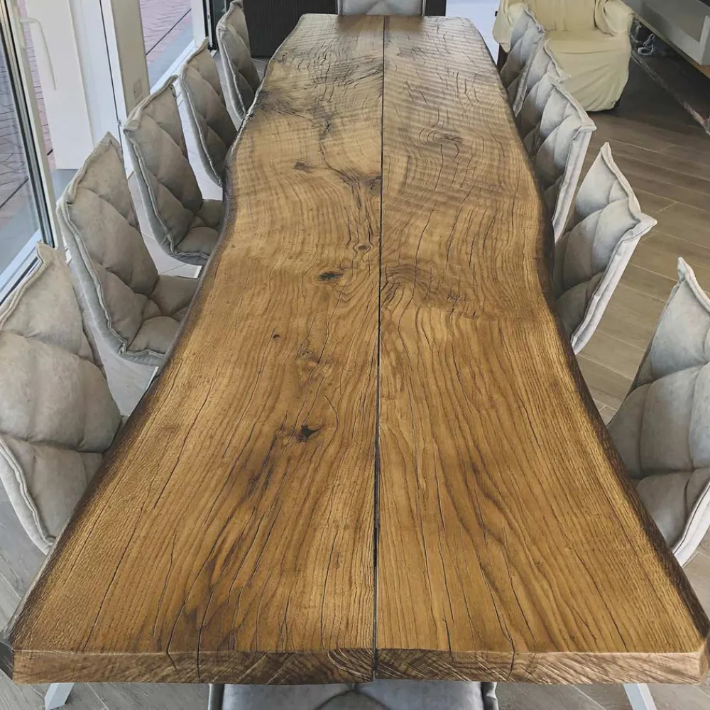 Weltlicher Tisch aus Eichenholz (Einzelstück) und 12 Stühle Made in Italy