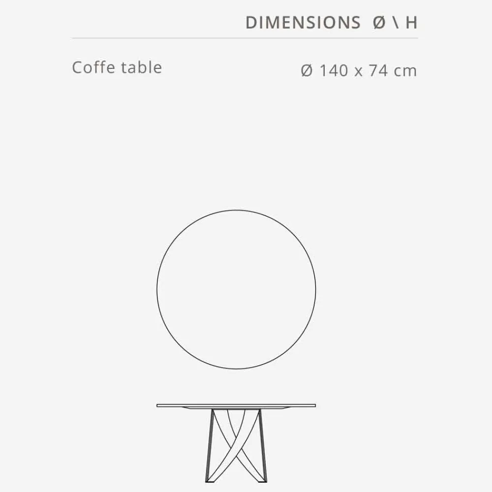 Der Tischgestell besteht aus schwarz lackiertem Metall, der sich durch überlappende geometrische Formen auszeichnet.