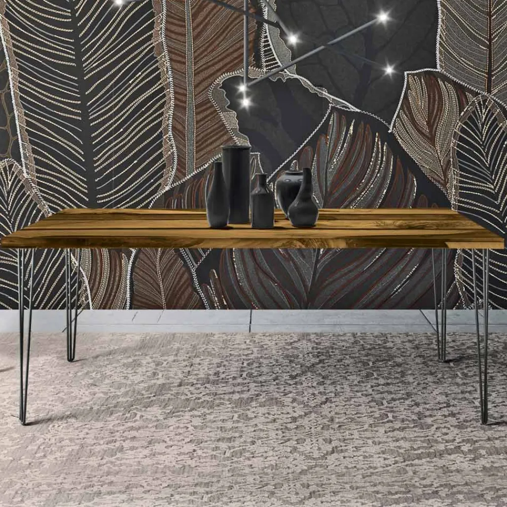 Fester rechteckiger Designtisch mit Holz- und Harzplatte, hergestellt in Italien