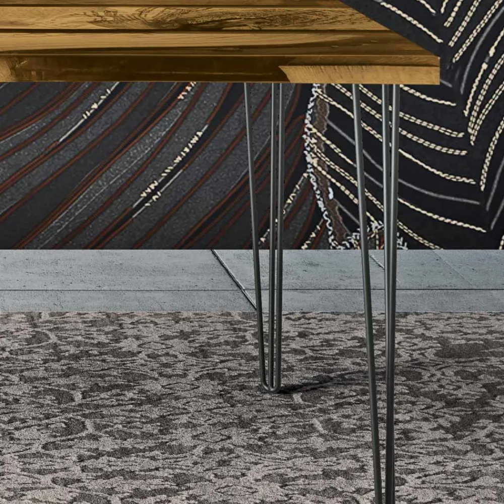 Esstisch bestehend aus vier Eisenbeinen und rechteckiger Platte aus Eiche und farbigem Epoxidharz . Eine Ergänzung mit einem minimalistischen , aber unglaublich modernen Stil, entworfen, um jeden Wohnraum auf wesentliche Weise einzurichten. Ausgestattet mit einer harzbeschichteten Tischplatte aus rustikaler, geknoteter Eiche und einem anthrazitfarbenen Metallsockel.