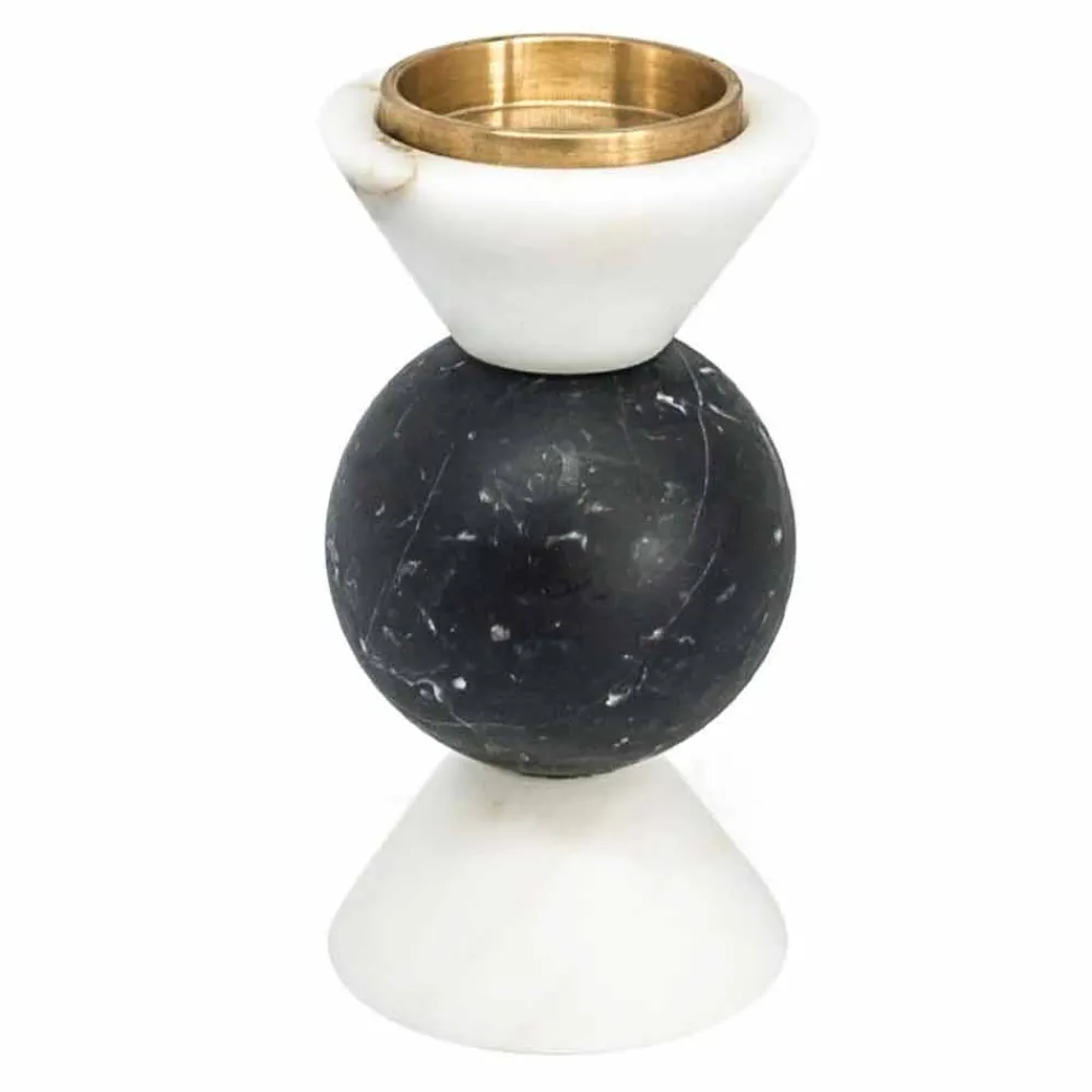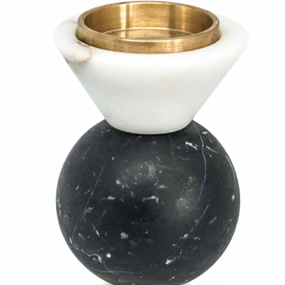 Niedriger zweifarbiger Kerzenhalter aus hochwertigem Marmor und Messing . Es ist als Unikat zu betrachten, da sich jeder verwendete Marmorblock von den anderen für Adern und Schattierungen unterscheidet. Der weiße Marmor stammt aus dem Steinbruch Poggio Silvestre, einer Quelle von Marmor erster Qualität, der seit dem letzten Jahrhundert klassifiziert wurde, während der schwarze Marquinia-Marmor aus spanischen Steinbrüchen gewonnen wird.