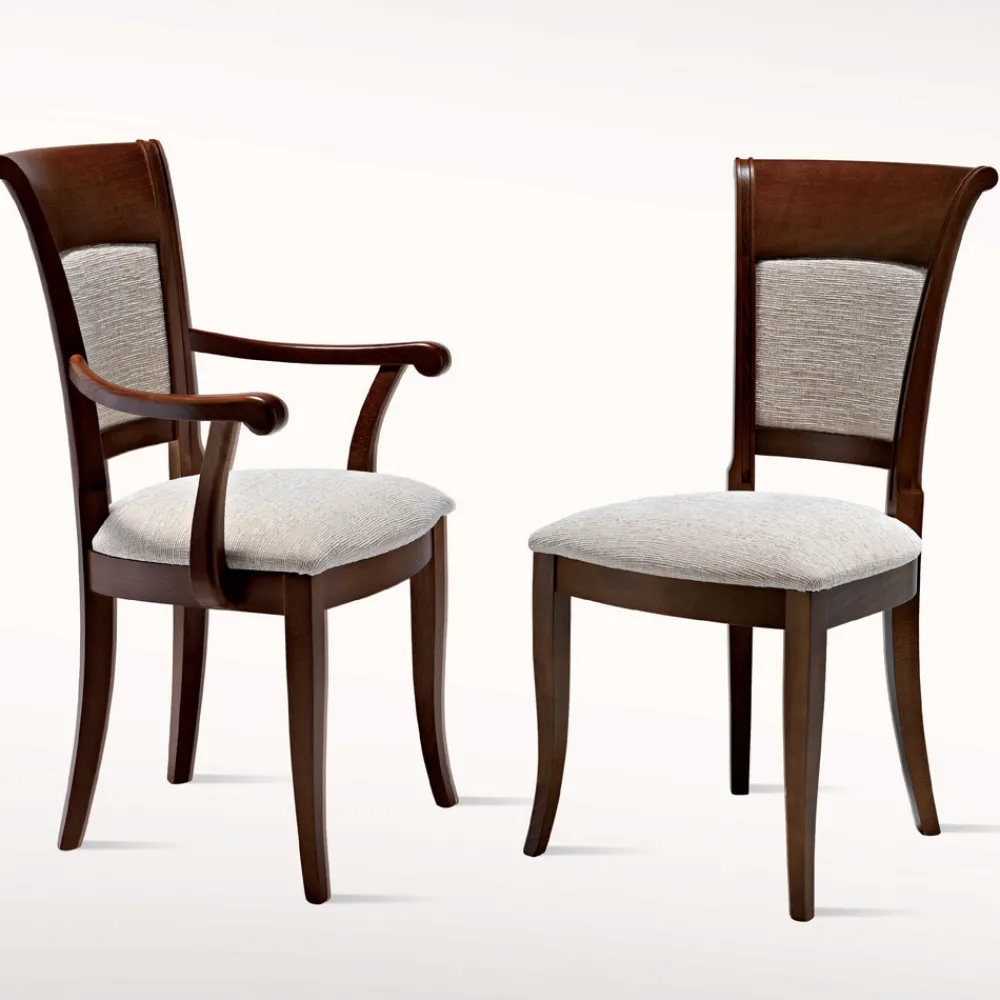 Stuhl aus Holz und Stoff mit oder ohne Armlehnen, klassisches Luxusdesign made in Italy.