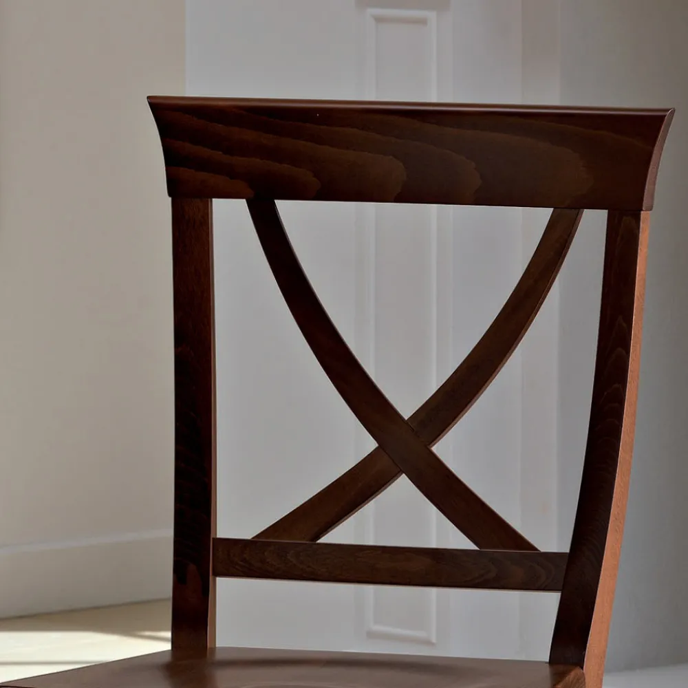 Massivholzstuhl mit gekreuzter Rückenlehne, Luxus made in Italy.