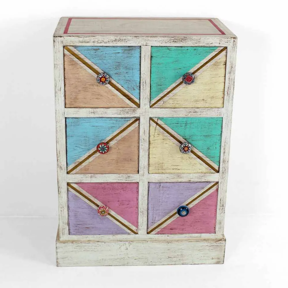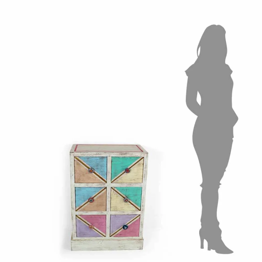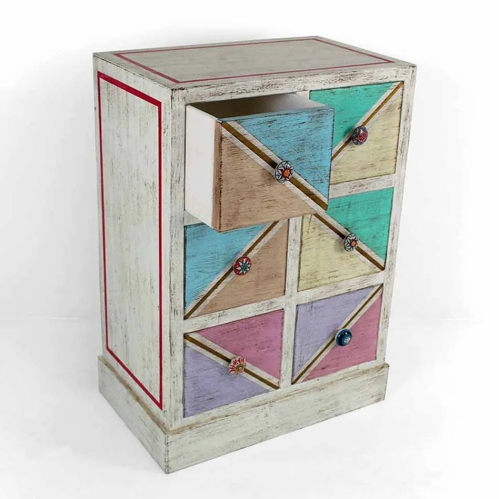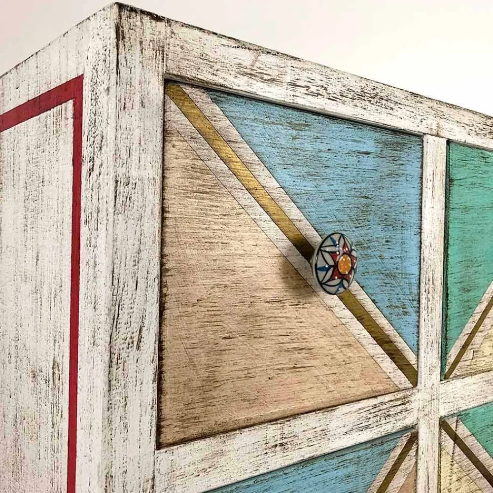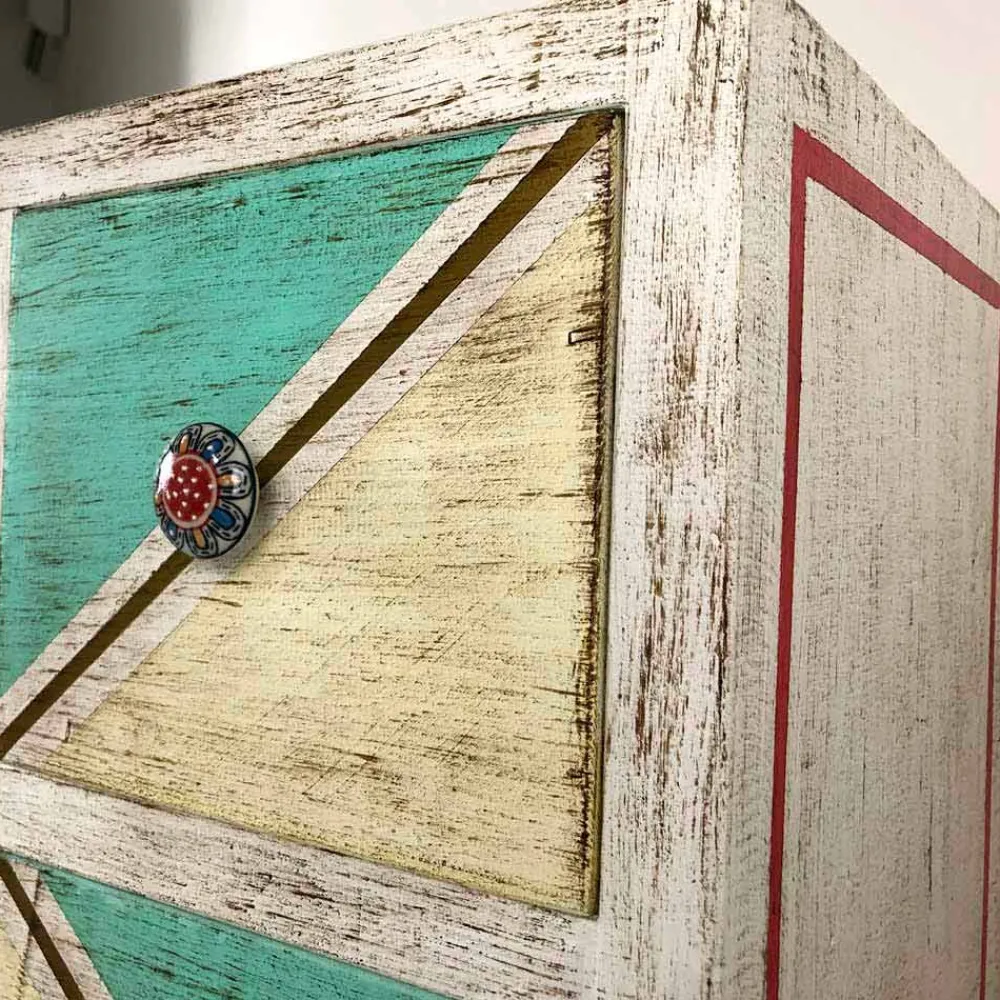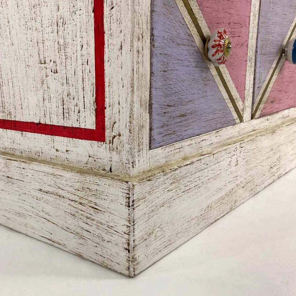 Die Besonderheit dieser wundervollen Kommode ist ihre farbenfrohe und lebendige Dekoration, die durch die Verwendung von Naturlandschaften mit Klebstoffen tierischen Ursprungs erzielt wird, um einem Produkt mit einer faszinierenden Ästhetik Leben einzuhauchen, die gleichzeitig eine gesunde Atmosphäre. Die Entscheidung, diese Art von Material zu bevorzugen, ergibt sich aus dem Wunsch der Konstrukteure, das Vorhandensein von Formaldehyd in den Produkten zu minimieren, da es eine schädliche und krebserzeugende Substanz darstellt. Diese Eigenschaft erhöht ihren Wert noch mehr und erweckt eine einzigartige Kommode dank des handwerklichen Aspekts zum Leben.