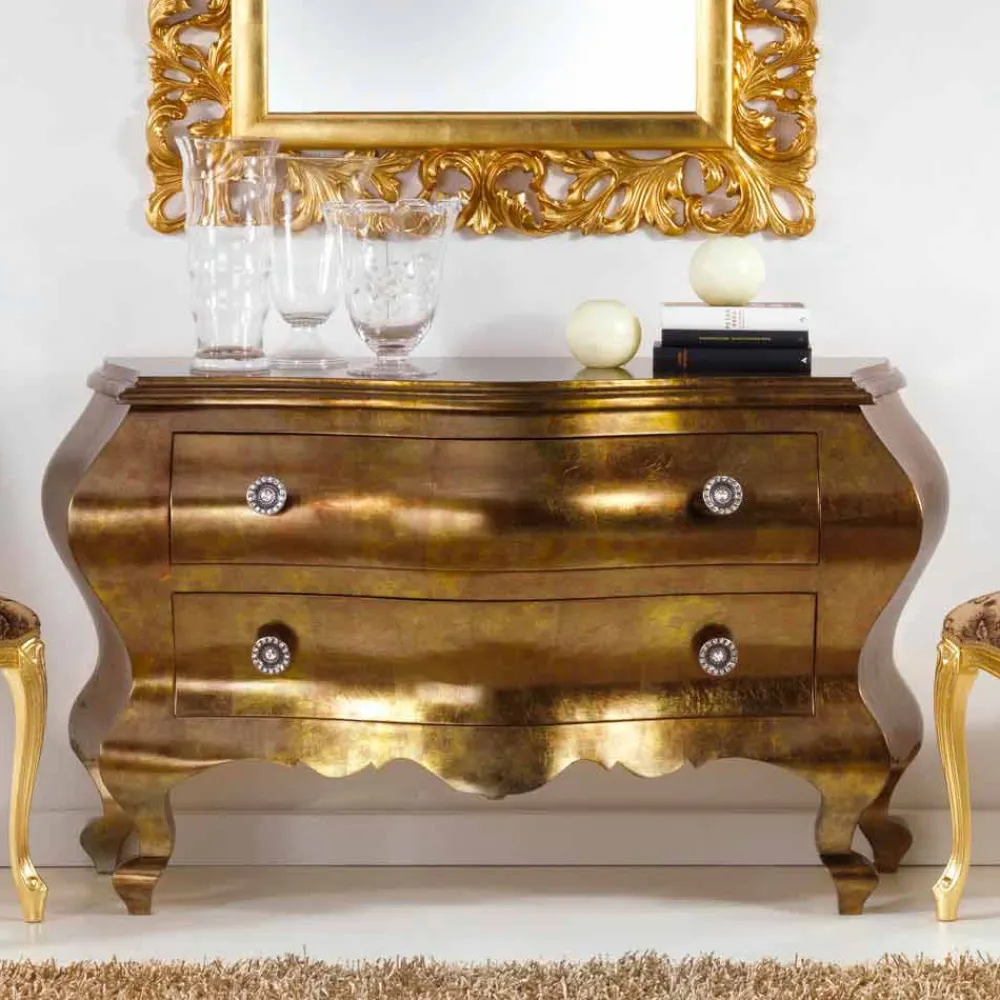 Alle Produkte stammen aus Italien und wurden von Experten handverarbeitet – made in Italy. Die Kommode ist in weiß, gold und Silber verfügbar.