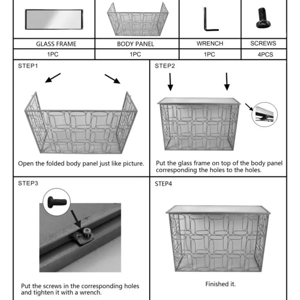 Eingangskonsole mit goldfarbener Eisenstruktur und Spiegelplatte.