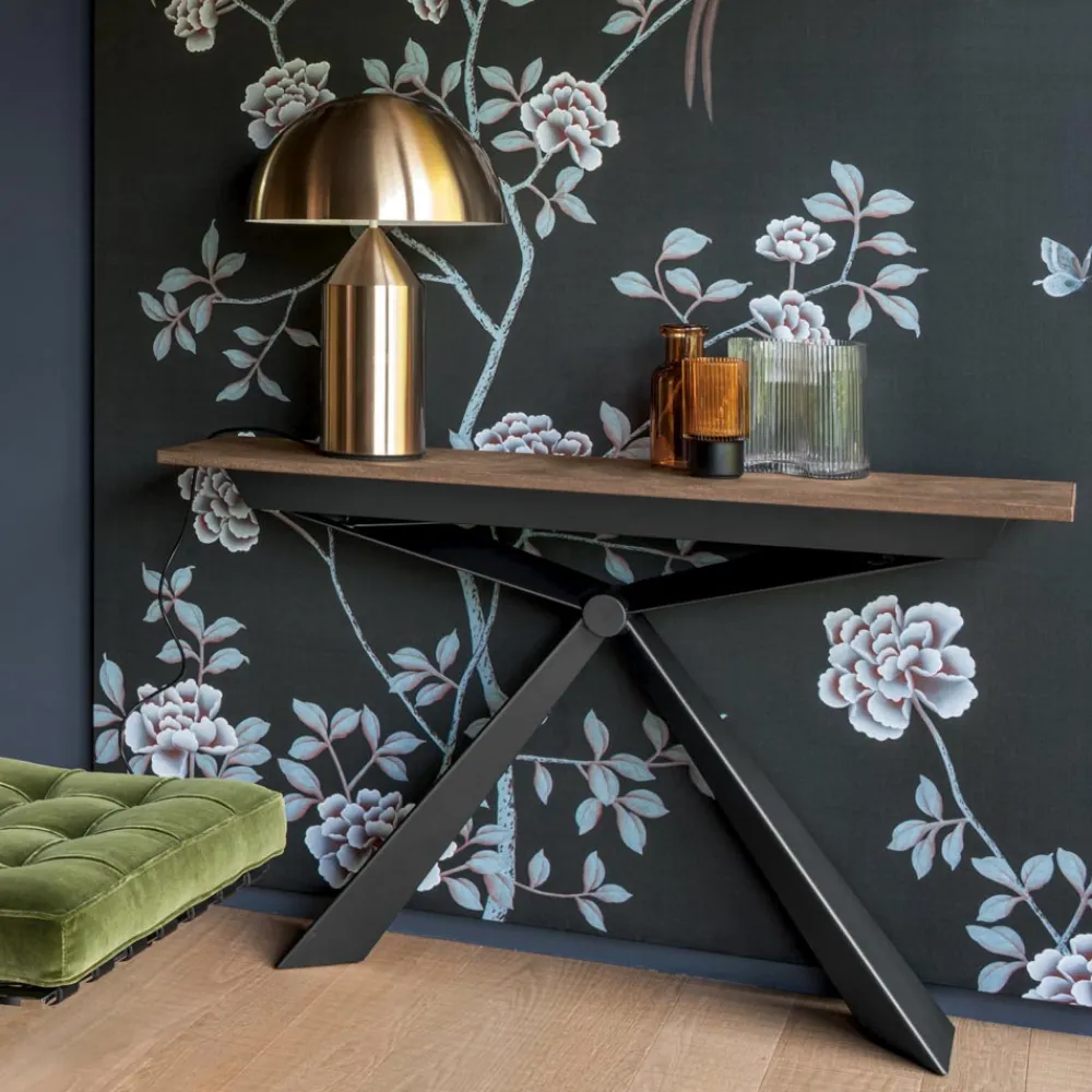 Eingangskonsole mit Platte in Mörteloptik und Metallstruktur Made in Italy.