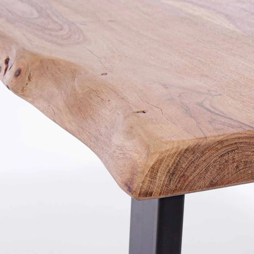Diese Designkonsole hat eine elegante und kostbare Akazienholzplatte und eine epoxidpulverbeschichtete Stahlstruktur mit einer Polyurethan-Lackierung.