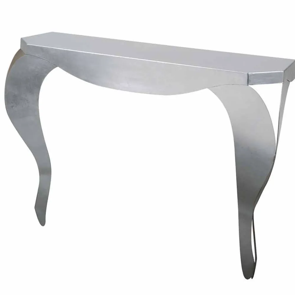 Konsolentisch in modernem Stil, handgefertigt aus Eisen in Blattgold oder Blattsilber.