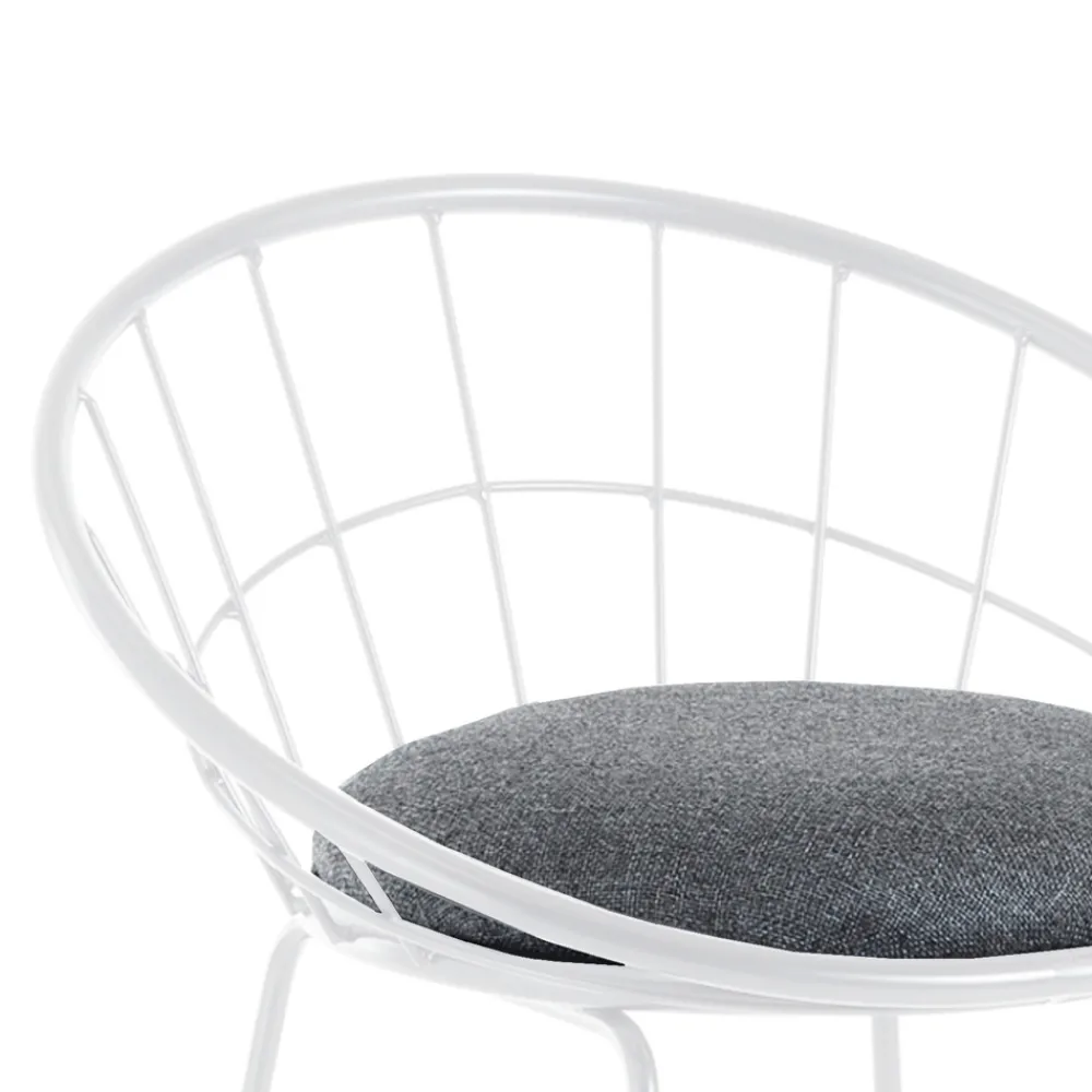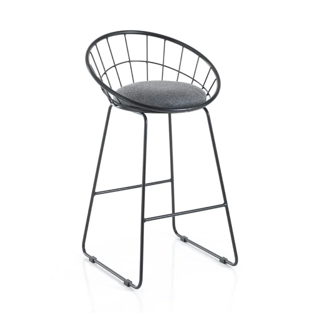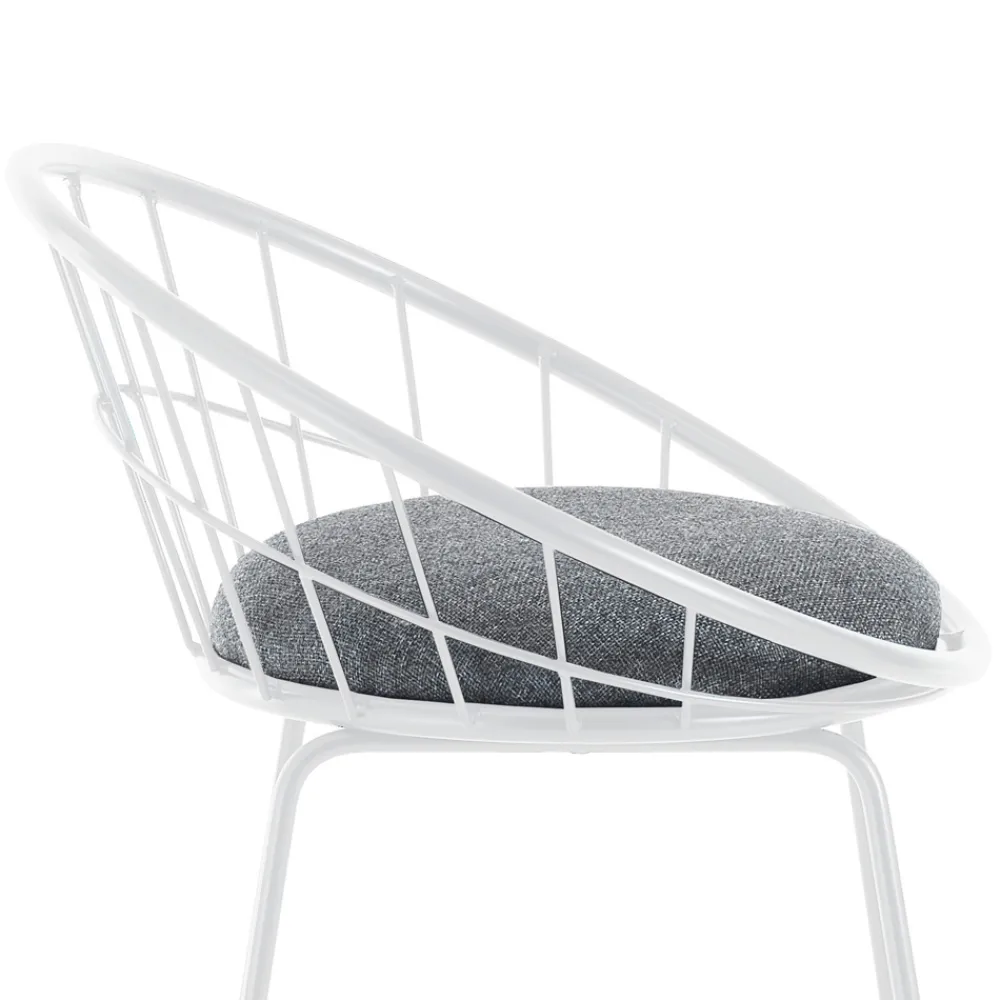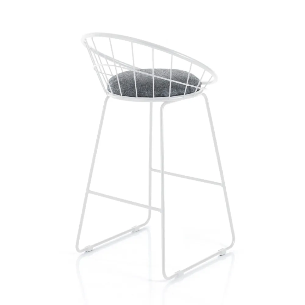 Set aus 2 Hockern mit gepolstertem Sitz, bezogen mit grauem Stoff und Struktur komplett aus lackiertem Stahl .