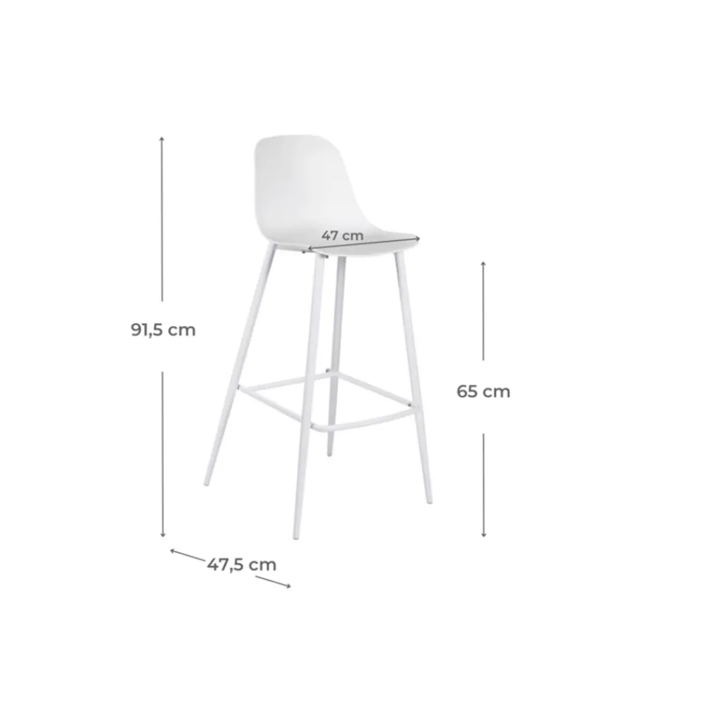 2 Innenhocker mit Sitz und Rückenlehne aus Polypropylen und Struktur Metall.
