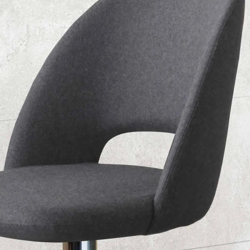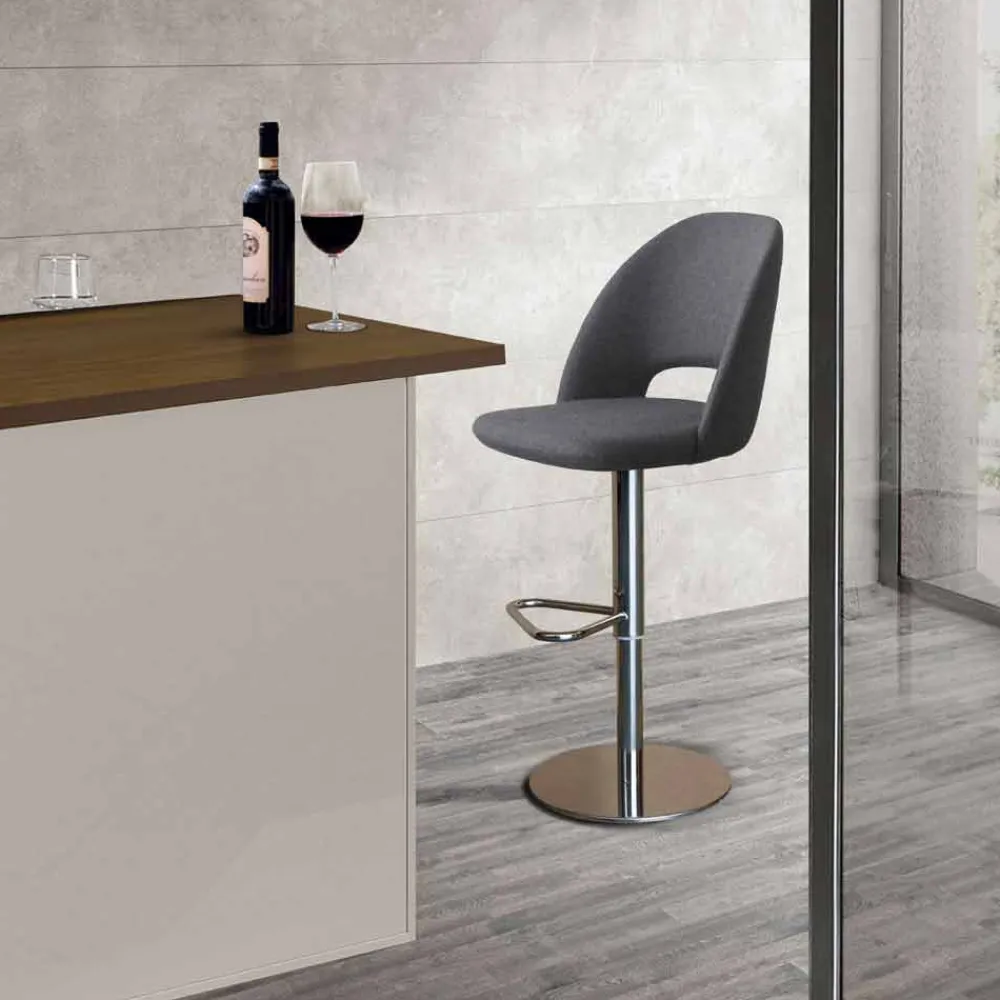 In Italien hergestellter Hocker mit drehbarer Struktur aus verchromtem Stahl mit Gasfeder und Sitzschale mit Armlehnen aus kaltgeformtem Polyurethan, nicht verformbar, mit Stoff bezogen. Eine Idee von modernen und vielseitigen Möbeln, die aus dem Wunsch entspringt, ein Produkt zu schaffen, das dank eines komfortablen und umhüllenden Designs die Freude am Bewirten und Teilen der Zeit steigern kann. Eine Ästhetik mit Liebe zum Detail, die sich jeder modernen Stilsituation anpasst, den Look mit einer exklusiven und raffinierten Note bereichert und gleichzeitig für einen einladenden Sitz sorgt.