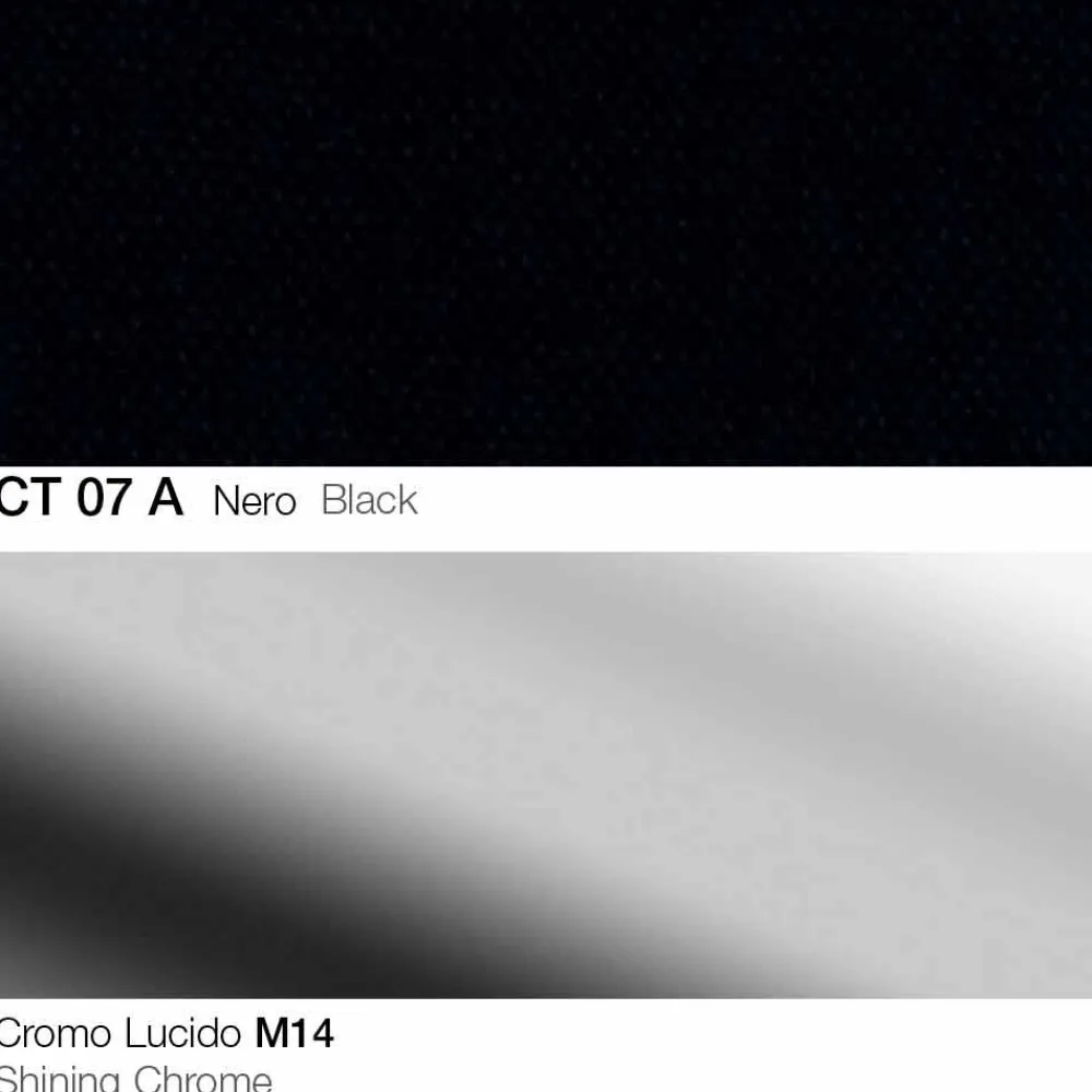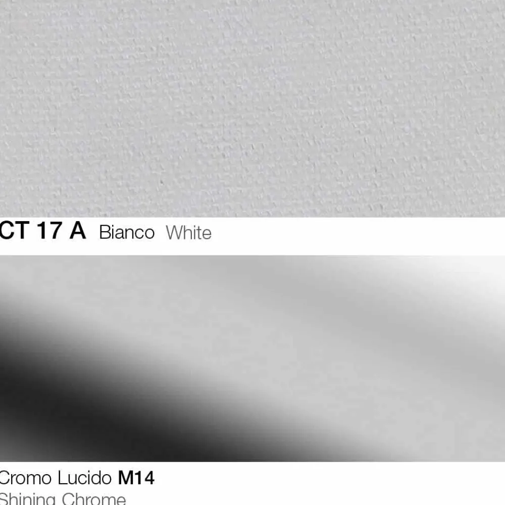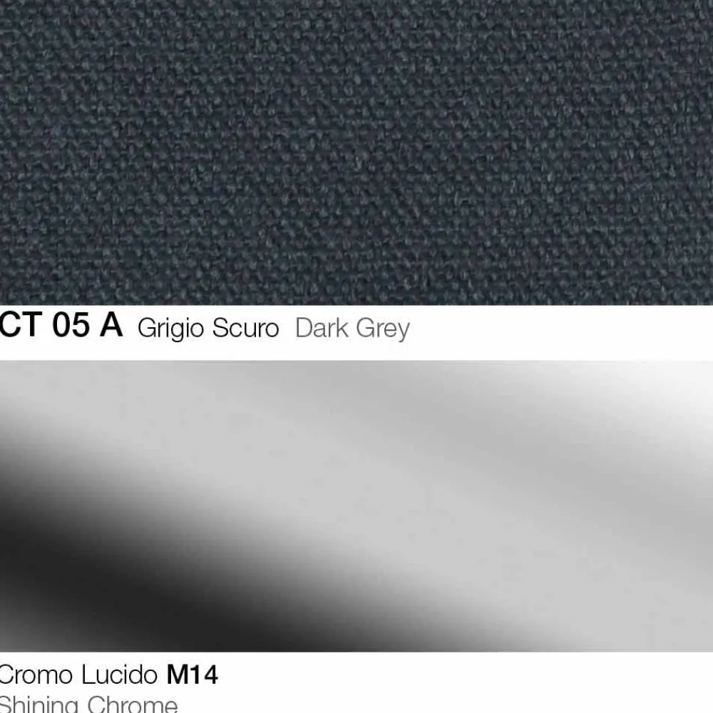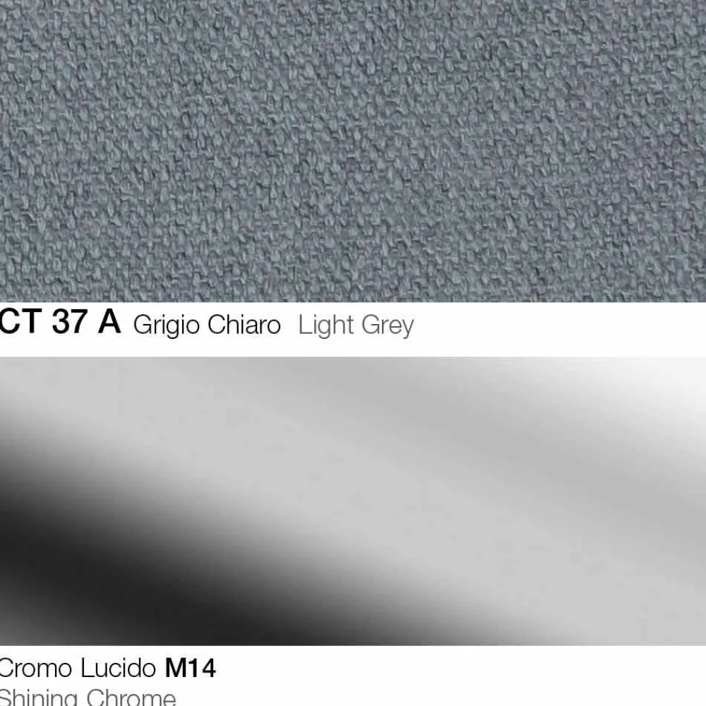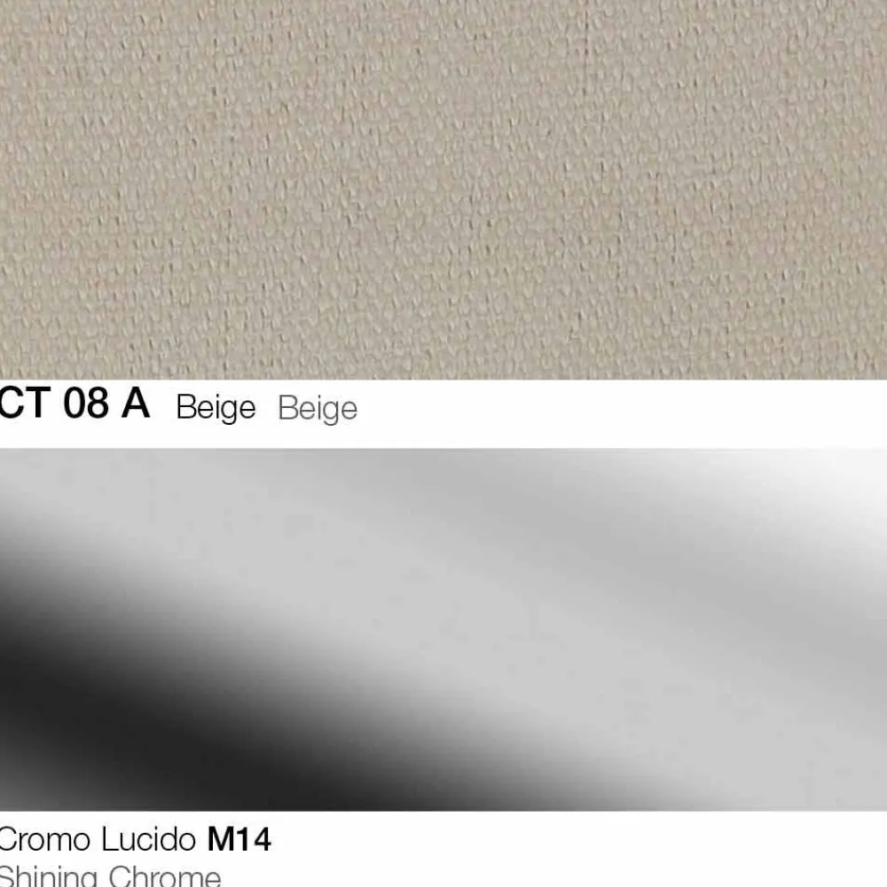 Drehhocker aus Stoff mit Gestell aus verchromtem Stahl Made in Italy.