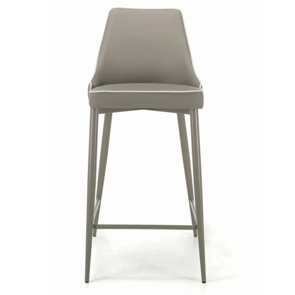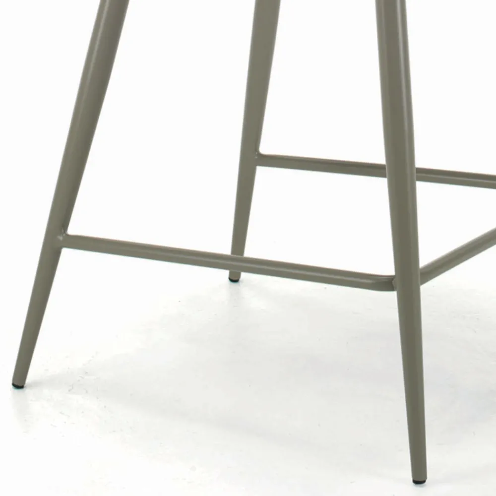 Fester Wohnzimmerhocker mit Sitz und Rückenlehne aus vollständig bezogenem Stahl und Untergestell aus lackiertem Stahl.