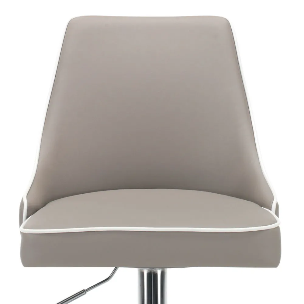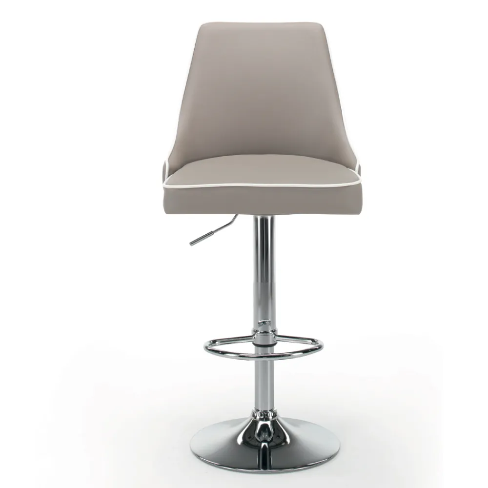Komplett in Italien hergestellter Küchenhocker mit Stahlgestell , komplett mit Öko-Leder bezogen, mit kontrastierender Kante und verchromtem Stahlgestell, ausgestattet mit Gasdruckfeder und praktischer Fußstütze . Ein Produkt, das Design und Schlichtheit vereint, Eigenschaften, die zusammen mit den wertvollen Materialien, die für seine Herstellung ausgewählt wurden, ein vielseitiges und funktionales Einrichtungsaccessoire zum Leben erwecken, das sich ideal dazu eignet, jeden Wohnraum mit zeitgenössischer Ästhetik mit Persönlichkeit und Charakter zu vervollständigen. Das Ergebnis ist ein bequemer und einladender Sitz, der dank seiner originellen Form und den wunderbaren Farben mit kontrastierenden Paspeln, die den Hocker zusätzlich mit Prestige und Wert bereichern, der Umgebung eine exklusive Note verleiht.
