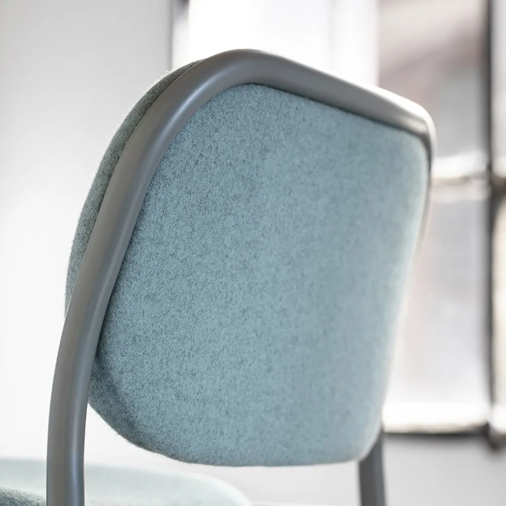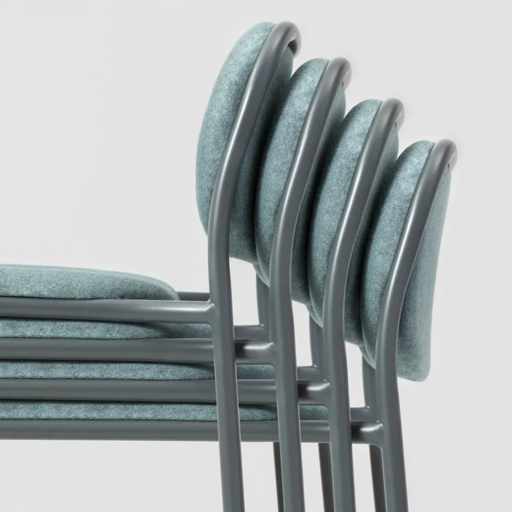 Die chromatische Vielfalt der vorgeschlagenen Stoffe zusammen mit den wunderbaren Nuancen für die Struktur bietet auch die Möglichkeit, mit der Fantasie für kreative, raffinierte und extravagante Farbkombinationen zu spielen, die in der Lage sind, die Innenräume zu koordinieren und dank der Persönlichkeit und Materialität des Stuhls die Umgebung zu charakterisieren . . Die Möglichkeit des Stapelns betont auch seine funktionale Seite und macht ihn zu einer perfekten Lösung auch für Objektumgebungen wie Bars und Restaurants, wo es wichtig ist, den Raum optimieren zu können, wenn die Hocker nicht verwendet werden.