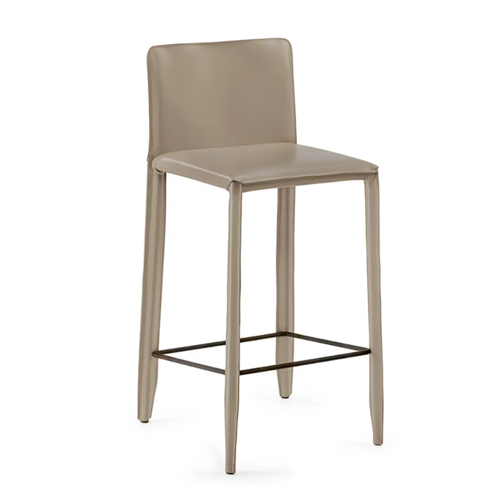 Esszimmerhocker mit Stahlrohrstruktur, komplett mit Siebenschläferleder bezogen und schwarzer Fußstütze , vollständig in Italien hergestellt.