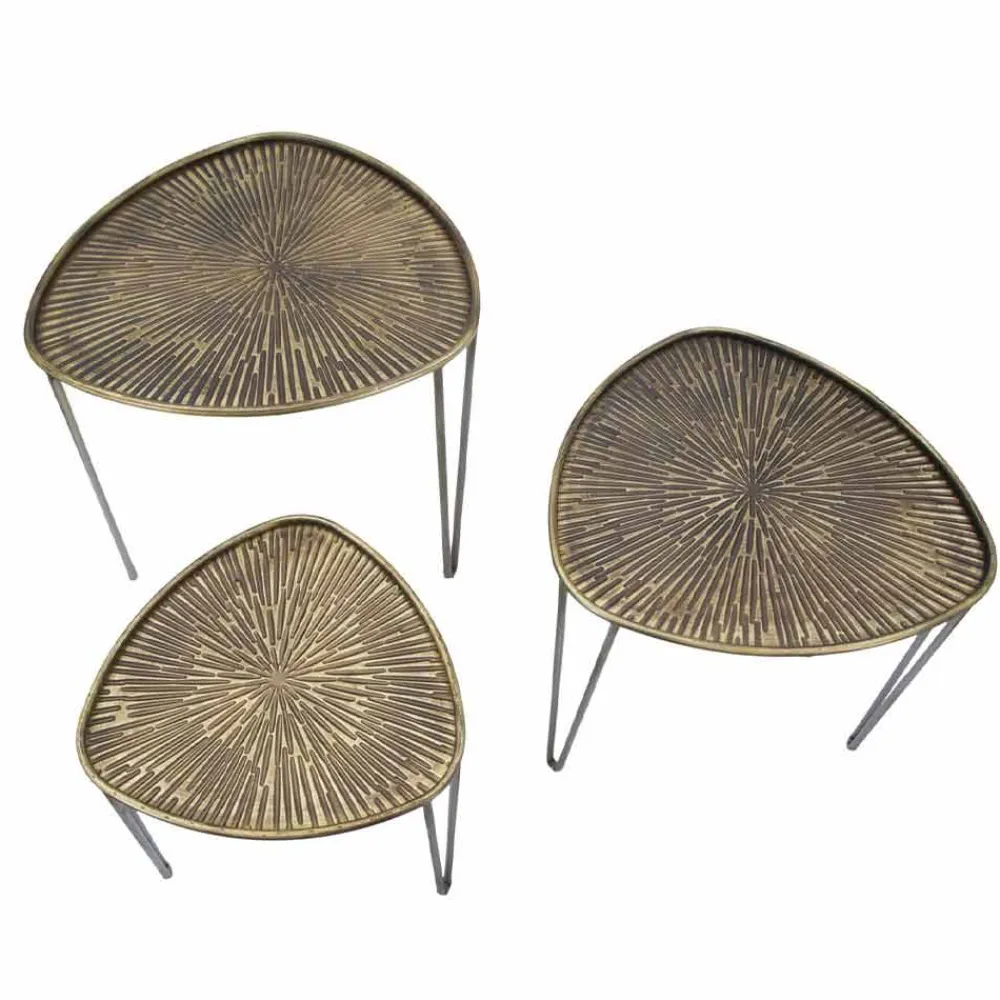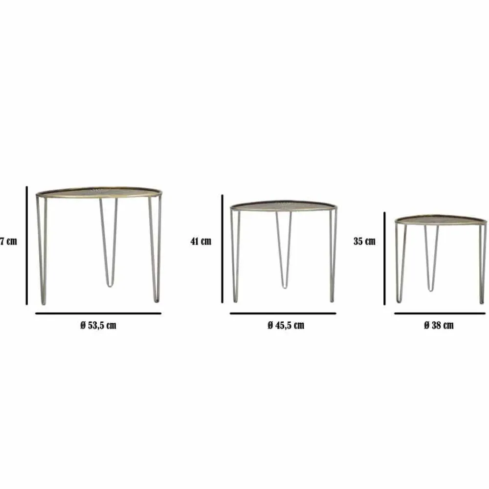 Set bestehend aus drei ovalen Couchtischen aus Eisen mit modernem Design.