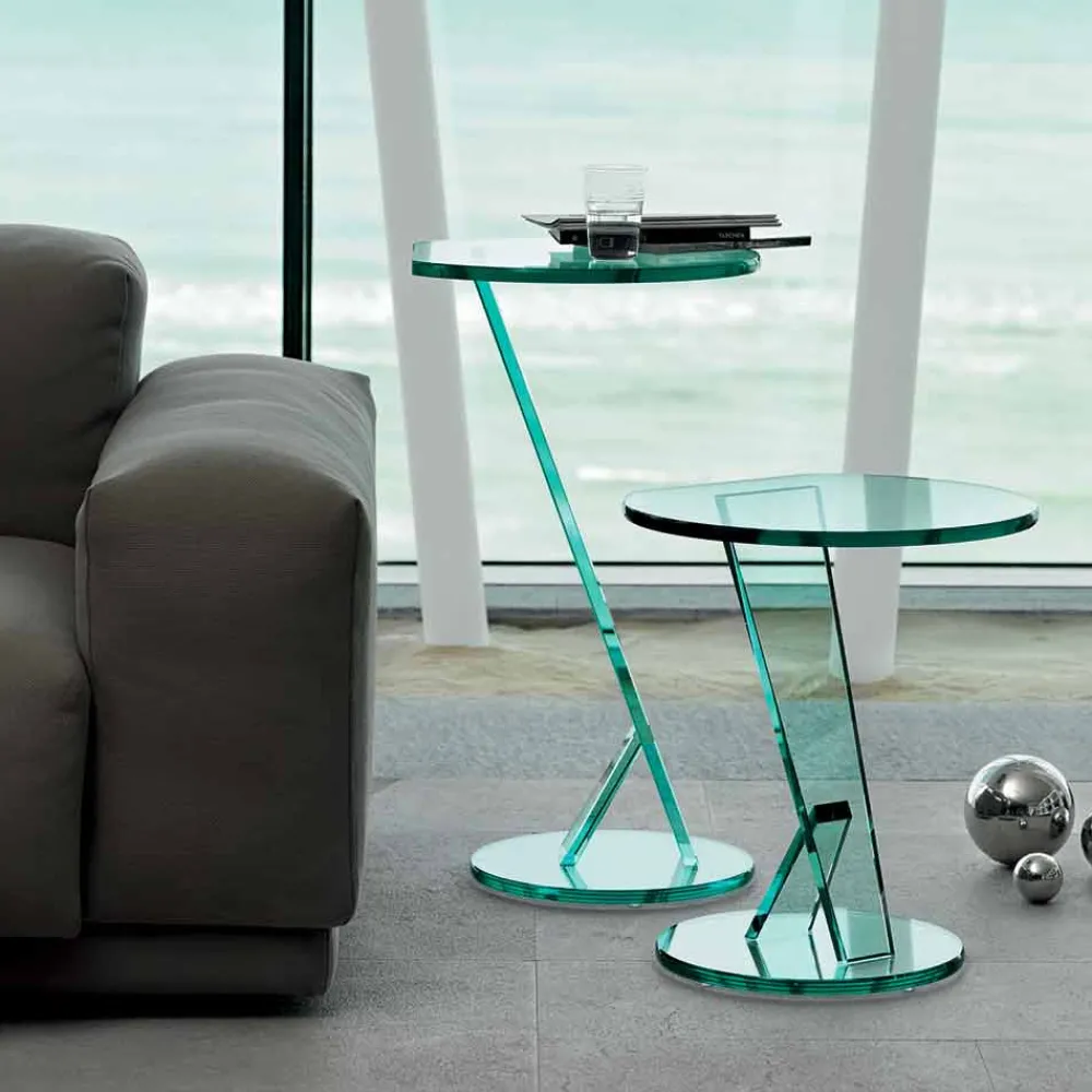 Sofa-Beistelltisch aus extra klarem Glas in 2 Höhen, hohe Qualität made in Italy.