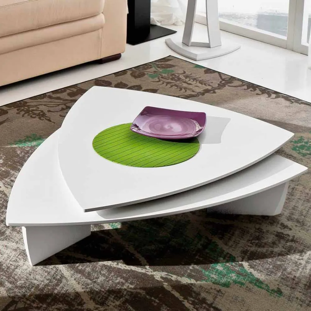 Couchtisch aus lackiertem MDF mit drehbarer Platte Made in Italy, Luxus.