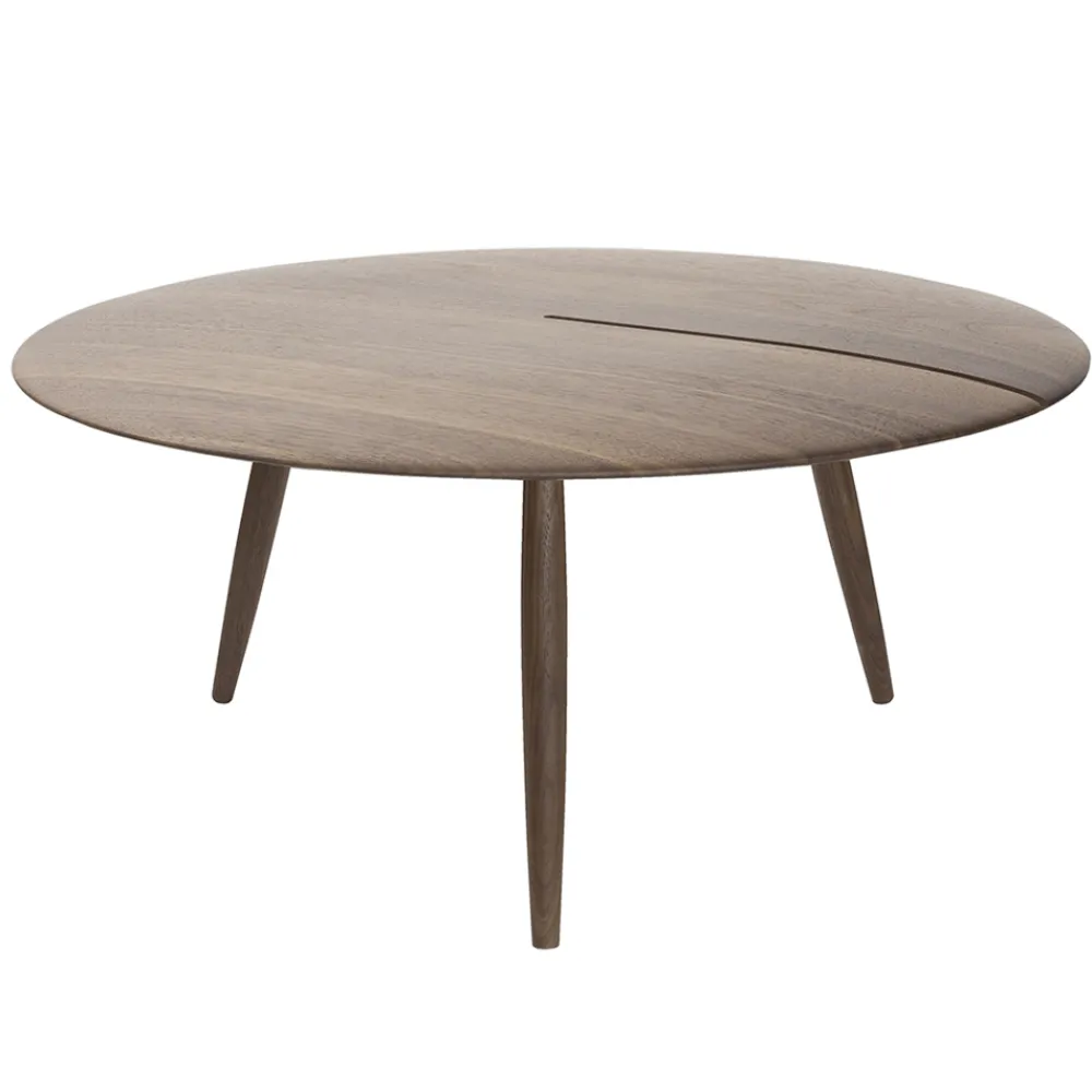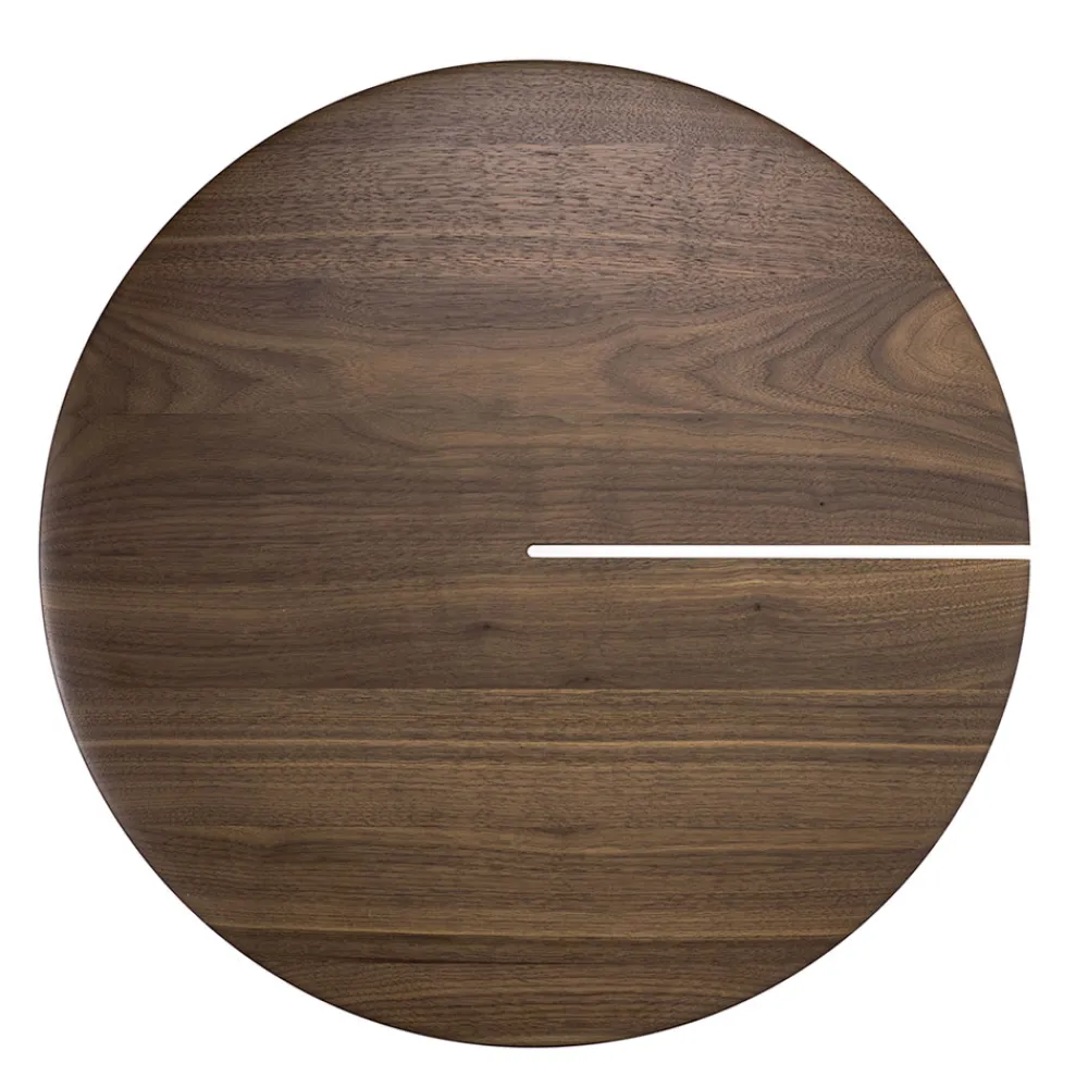 Niedriger runder Couchtisch für Wohnzimmer mit modernem und innovativem Design. Es besteht vollständig aus Holz mit einer Auswahl an massivem Walnussholz oder offenporiger lackierter Esche und ist in 3 Oberflächenvarianten und in zwei verschiedenen Größen erhältlich, um allen Anforderungen gerecht zu werden. Maxime zeichnet sich auch durch den “ Schnitt “ auf der Oberseite aus, mit dem Sie das Elektrokabel einer Lampe oder eines anderen Zubehörs einführen können.