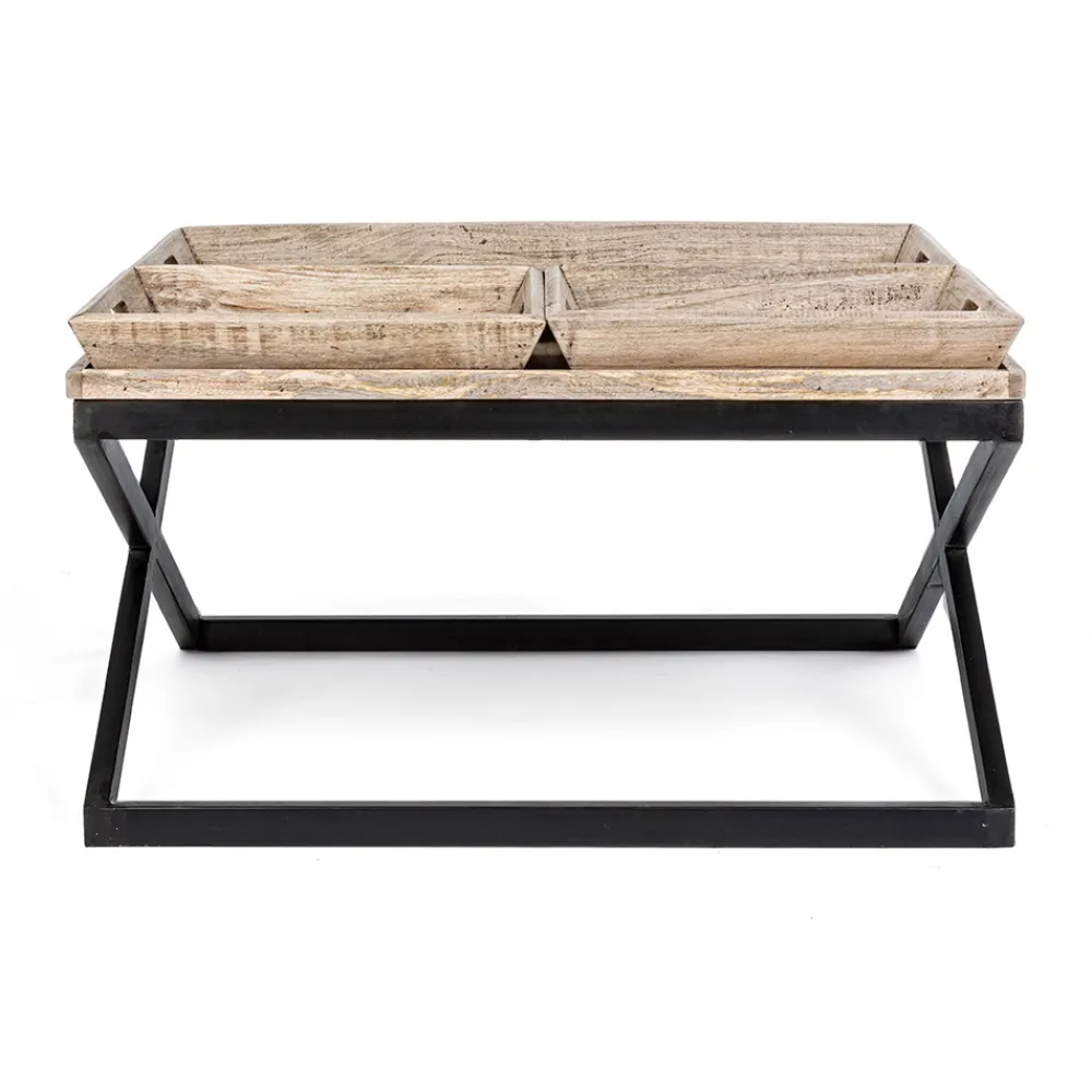 Couchtisch aus Stahl und Mangoholz mit Tablett, 3 Größen.