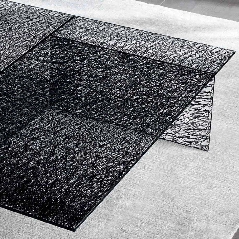 Couchtisch im modernen Design aus dekoriertem, extra klarem Glas, handgefertigt in Italien.