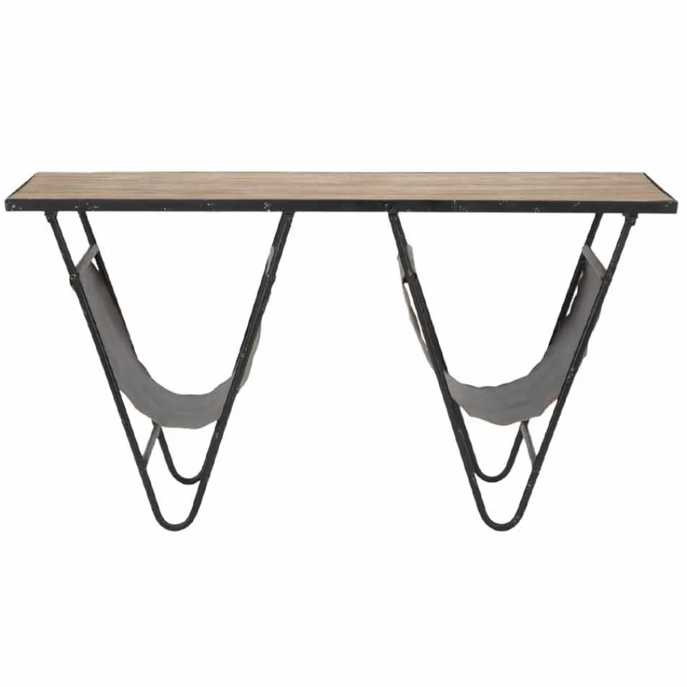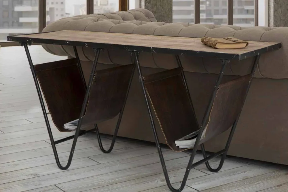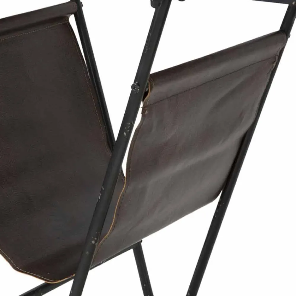 Moderner Zeitungstisch aus Eisenholz und Kunstleder.