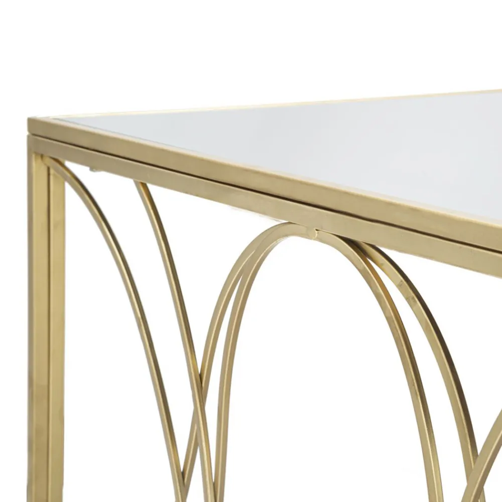 Moderner Couchtisch aus Eisen mit goldenem Finish mit Spiegelplatte