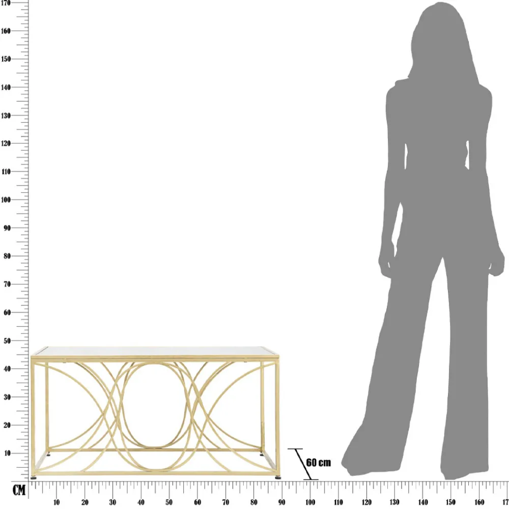 Couchtisch mit goldfarbener Eisenstruktur und Spiegelplatte . Ein einfaches und faszinierendes Design , einzigartig und exklusiv dank der besonderen Basis, die geschwungene Linien und geometrische Formen verwendet , um die Ästhetik des Produkts zu bereichern und einen Hauch von Persönlichkeit zu verleihen. Das Ergebnis ist ein raffinierter und avantgardistischer Couchtisch, der sich dank seiner Vielseitigkeit und seines zeitgenössischen Charakters jeder modernen stilistischen Situation anpassen kann.