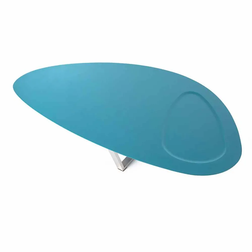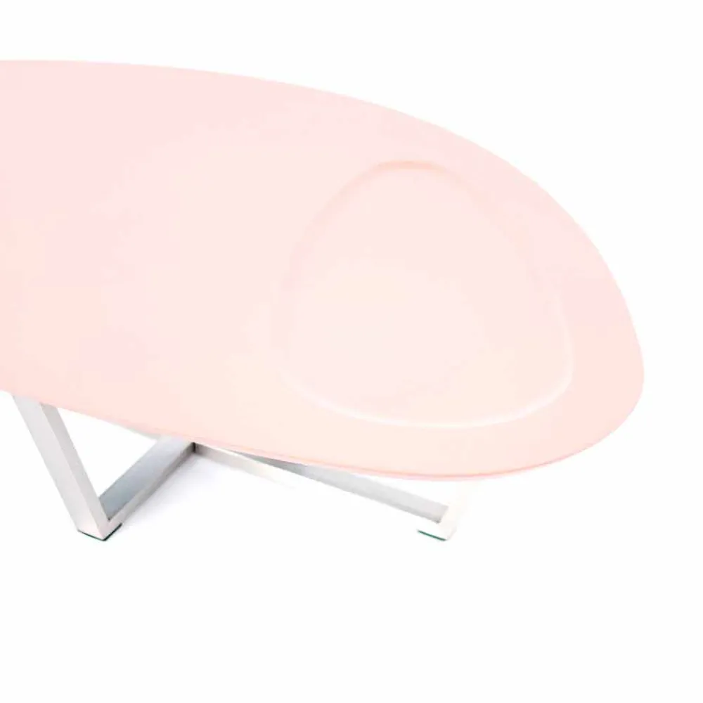Donatella ist ein geformter Couchtisch mit einer MDF-Platte und einer verchromten Metallbasis.