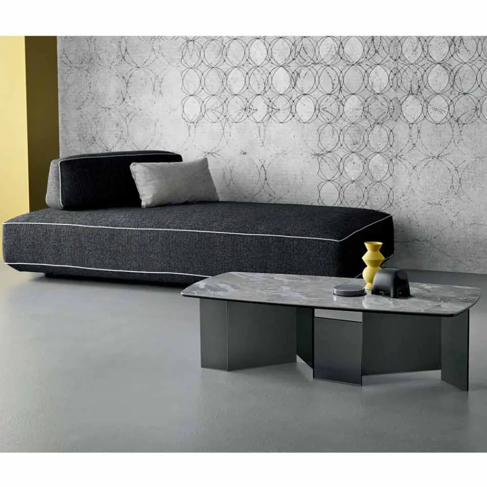 Niedriger Tisch mit Keramikplatte und Rauchglasbeinen in 3 Größen made in Italy.
