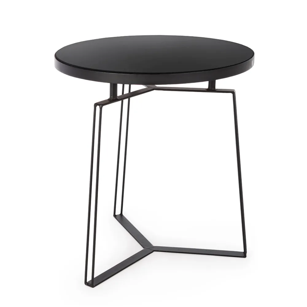Runder Couchtisch aus schwarzem Stahl und Glasplatte, 2 Größen.