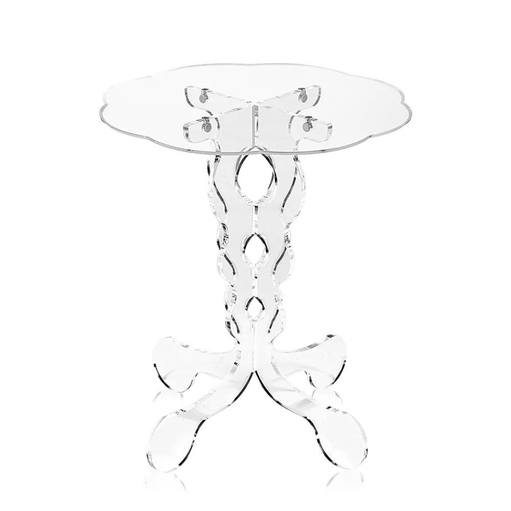 Couchtisch in zwei Größen aus transparentem Plexiglas Arabesken Design made in Italy.