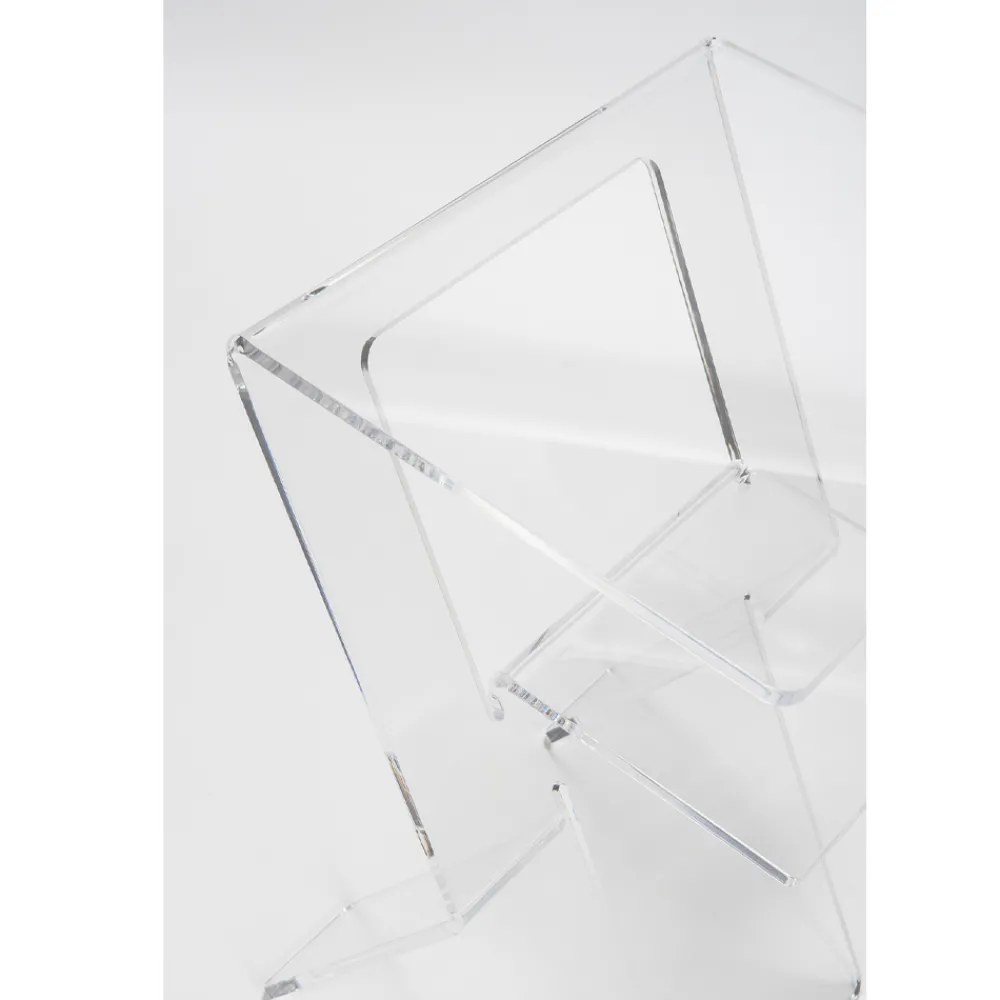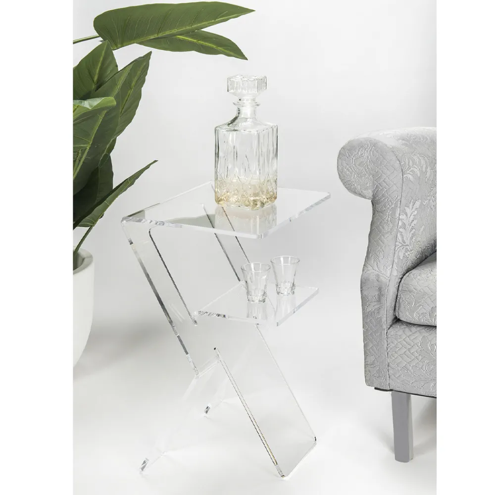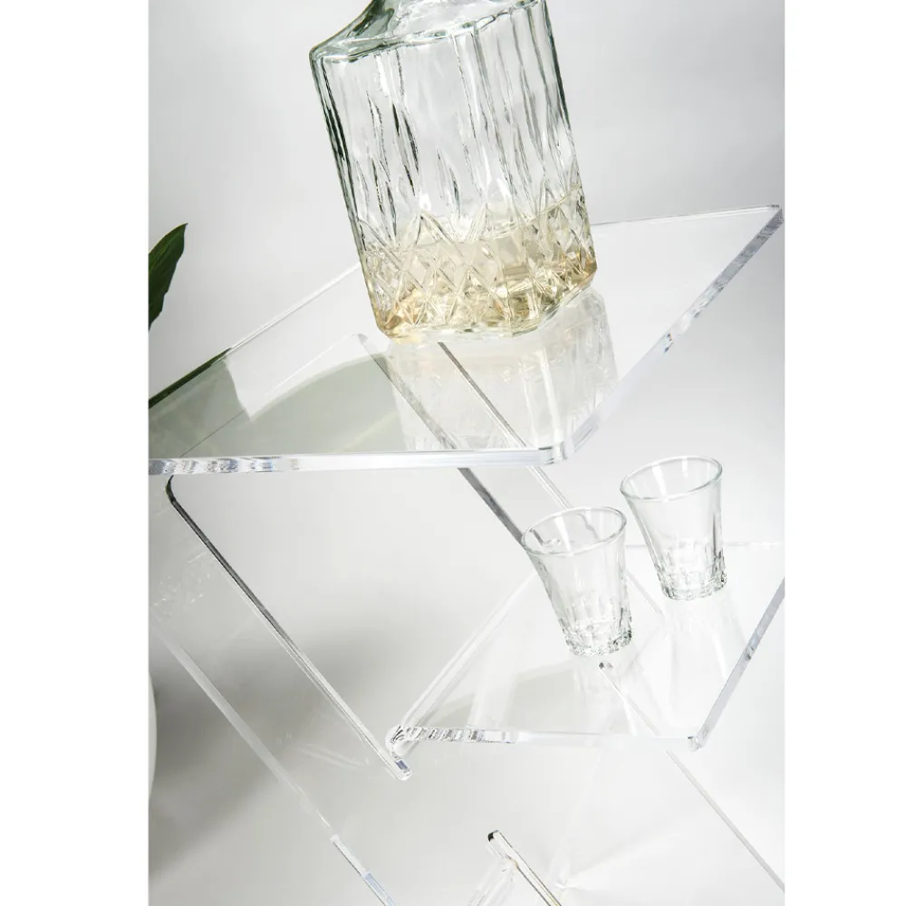 Dieser Sofa-Beistelltisch besteht vollständig aus transparentem Plexiglas, das dank seiner physikalisch-technischen Eigenschaften das Produkt zu einem macht sowohl für den Innen- als auch für den Außenbereich geeignet.