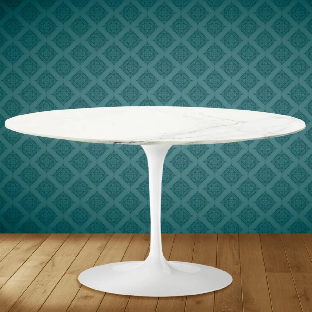 Couchtisch mit ovaler Platte aus Rem-Keramik, mattem Calacatta-Lincoln-Marmor-Effekt und Untergestell aus poliertem Aluminium , vollständig in Italien hergestellt . Dieses Einrichtungsaccessoire hat zwei einzigartige Eigenschaften: die Rem-Keramik und die ovale Form. Keramik zeichnet sich durch ihre komplexe und sehr feine Grafik aus, die es schafft, in jedem Wohnambiente, in dem sie platziert wird, eine warme und einladende Atmosphäre zu schaffen. Auch dieses Material ist von hoher Qualität und weist eine erhebliche Widerstandsfähigkeit auf . Die besondere ovale Form wird dank der Linie und ihrer Zweckmäßigkeit und Funktionalität immer beliebter, um Räumen Originalität zu verleihen.