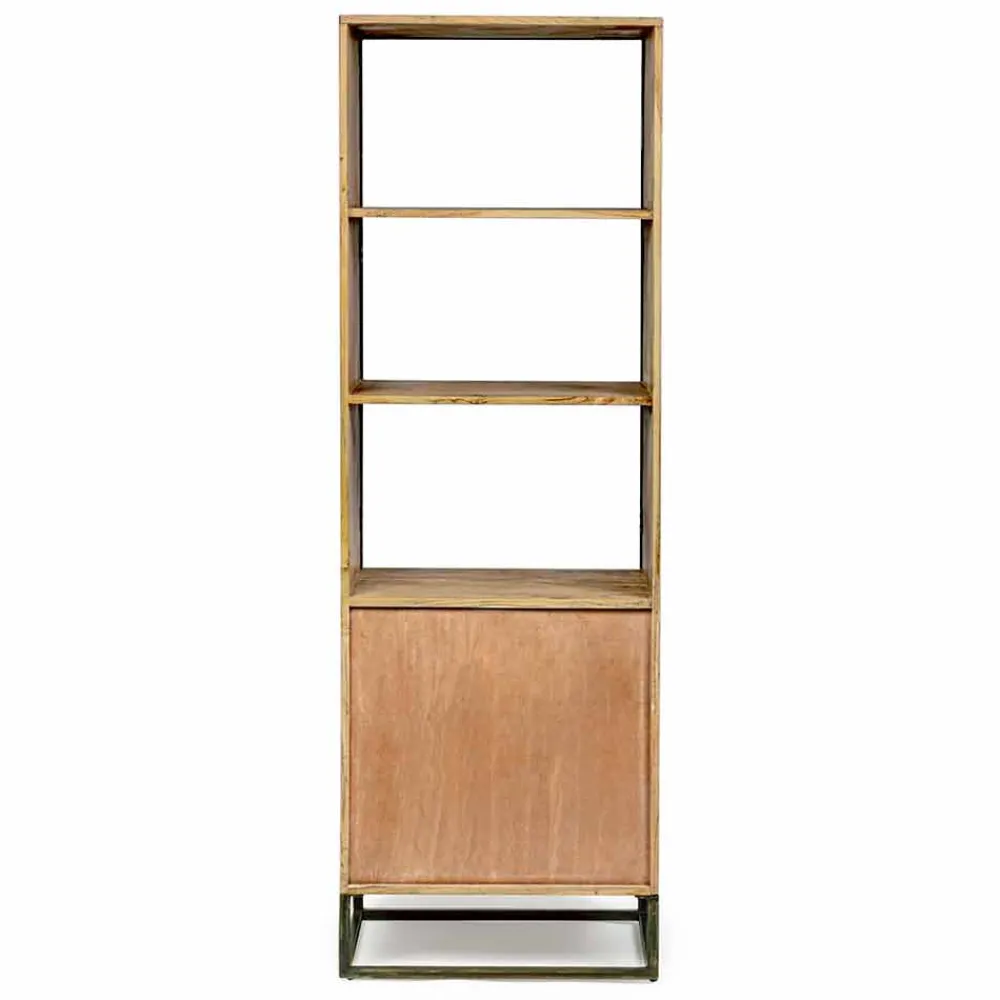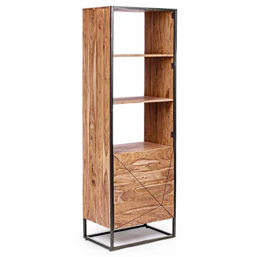 Boden Bücherregal aus Akazienholz und lackiertem Stahl, modernes Design.