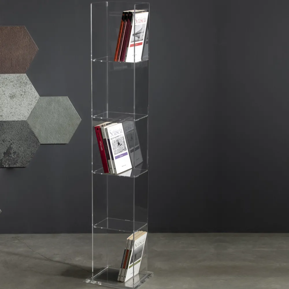 Freistehendes Bücherregal aus transparentem Acrylglas, Design made in Italy.