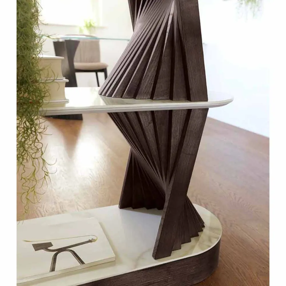 Design Boden Bücherregal aus Eschenholz mit Steinzeugregalen, hochwertige Made in Italy Produkt.