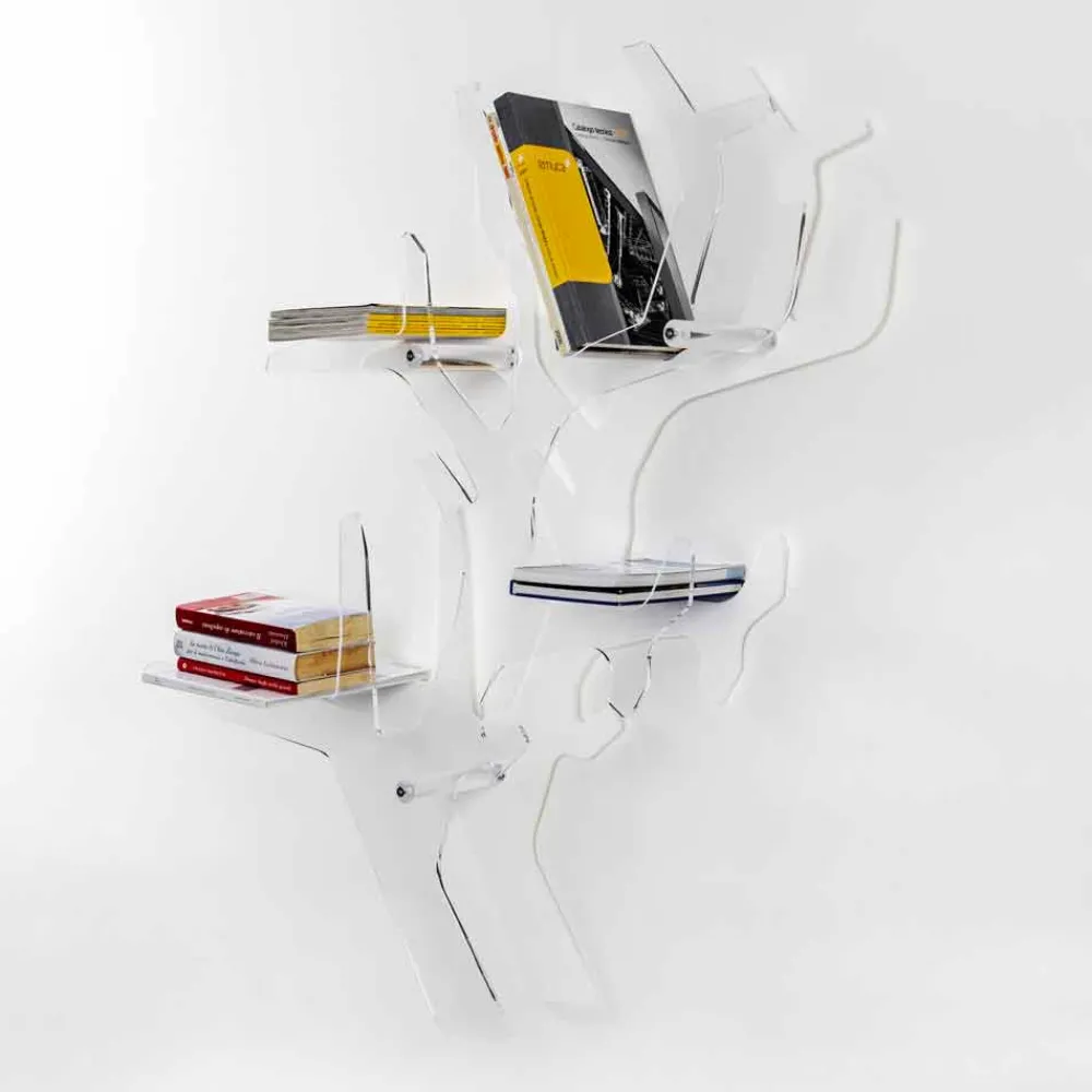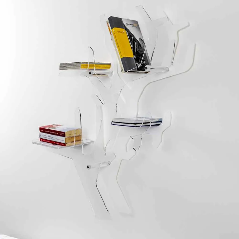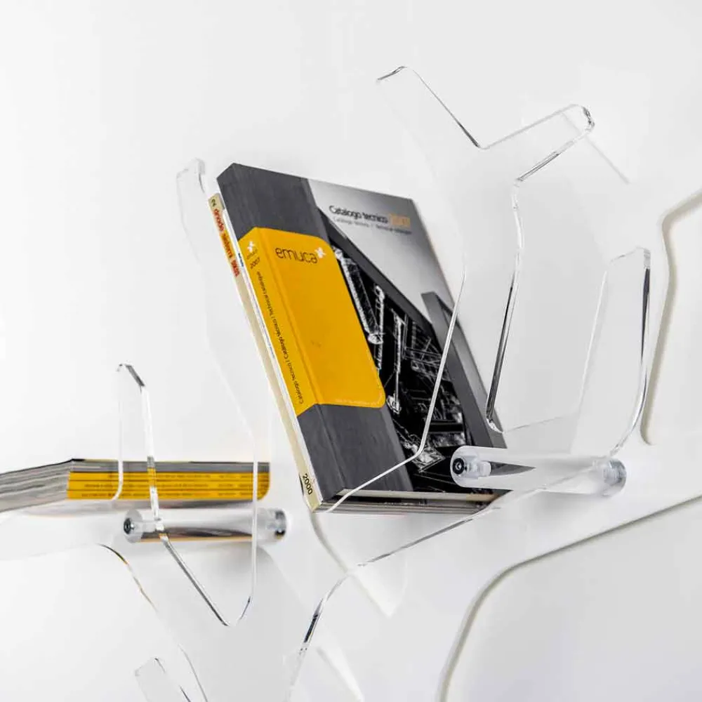Maritime Sensationen für das Wandbücherregal Carol, hergestellt mit präzisen Laserschnitten, die ihm die Form eines wahren Juwels des Meeres verleihen. Der vordere Teil aus transparentem Plexiglas, der den in einfarbigem Weiß erhältlichen hinteren Teil reflektiert, verleiht der häuslichen Umgebung einen Hauch von Eleganz. Sowohl die transparente Basis als auch die Ablage bestehen aus 100 % reinem Polymer-PMMA-Acrylkristall. Helligkeit und Brillanz bleiben im Laufe der Zeit konstant und unverändert. Das von uns verwendete PMMA-Plexiglas aus reinem Polymer ist ungiftig, hypoallergen, geruchlos und antibakteriell. 100 % recycelbar. Konform mit UNI EN 71-3:200. Konzipiert, entworfen und hergestellt in Italien, mit italienischen Materialien.