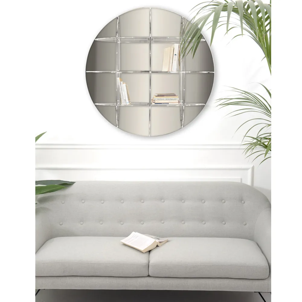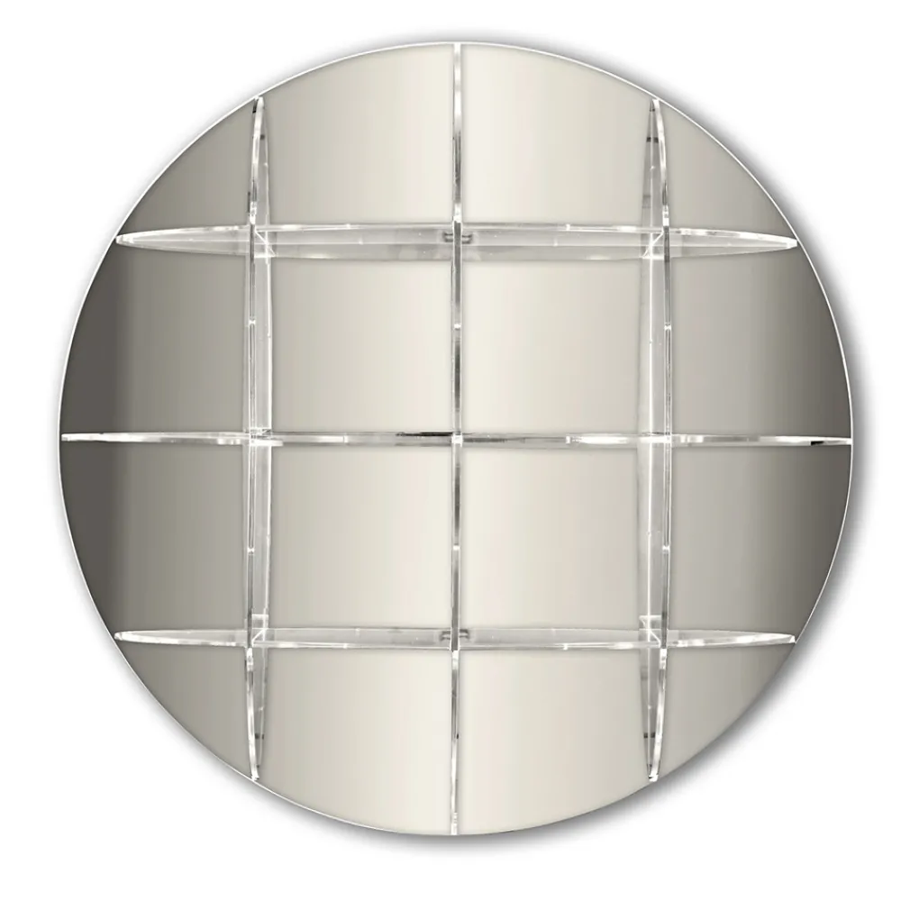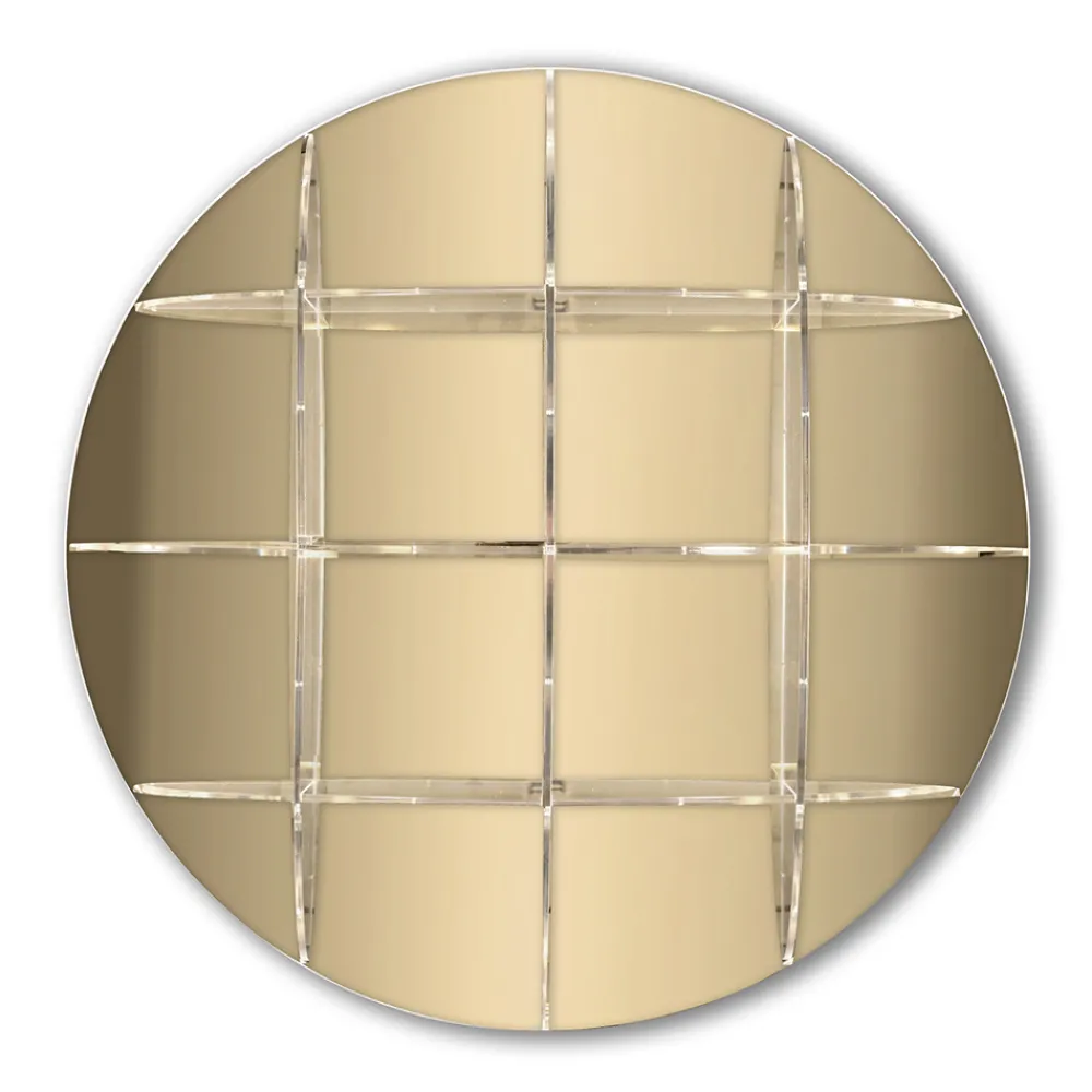 Rundes Wandbücherregal aus goldenem oder silbernem Plexiglas Made in Italy.