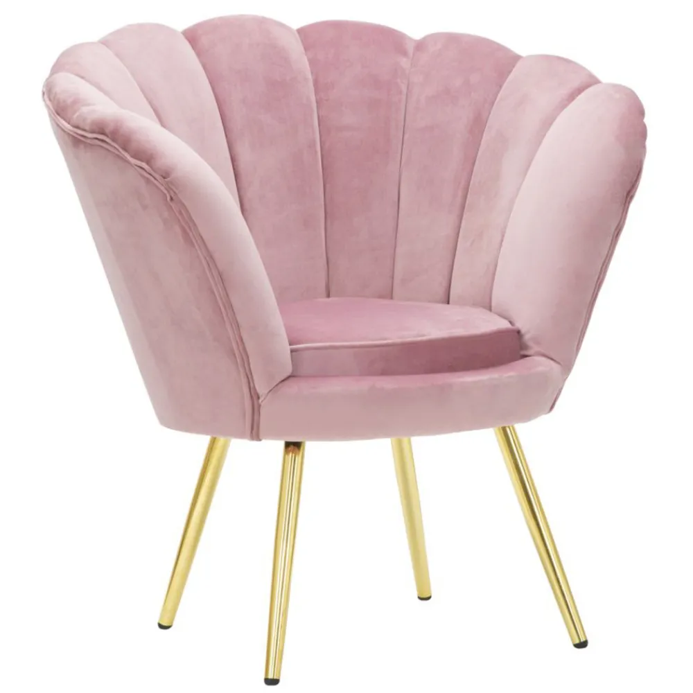 Wohnzimmersessel mit Samt bezogen mit Eisengestell in Gold-Finish.