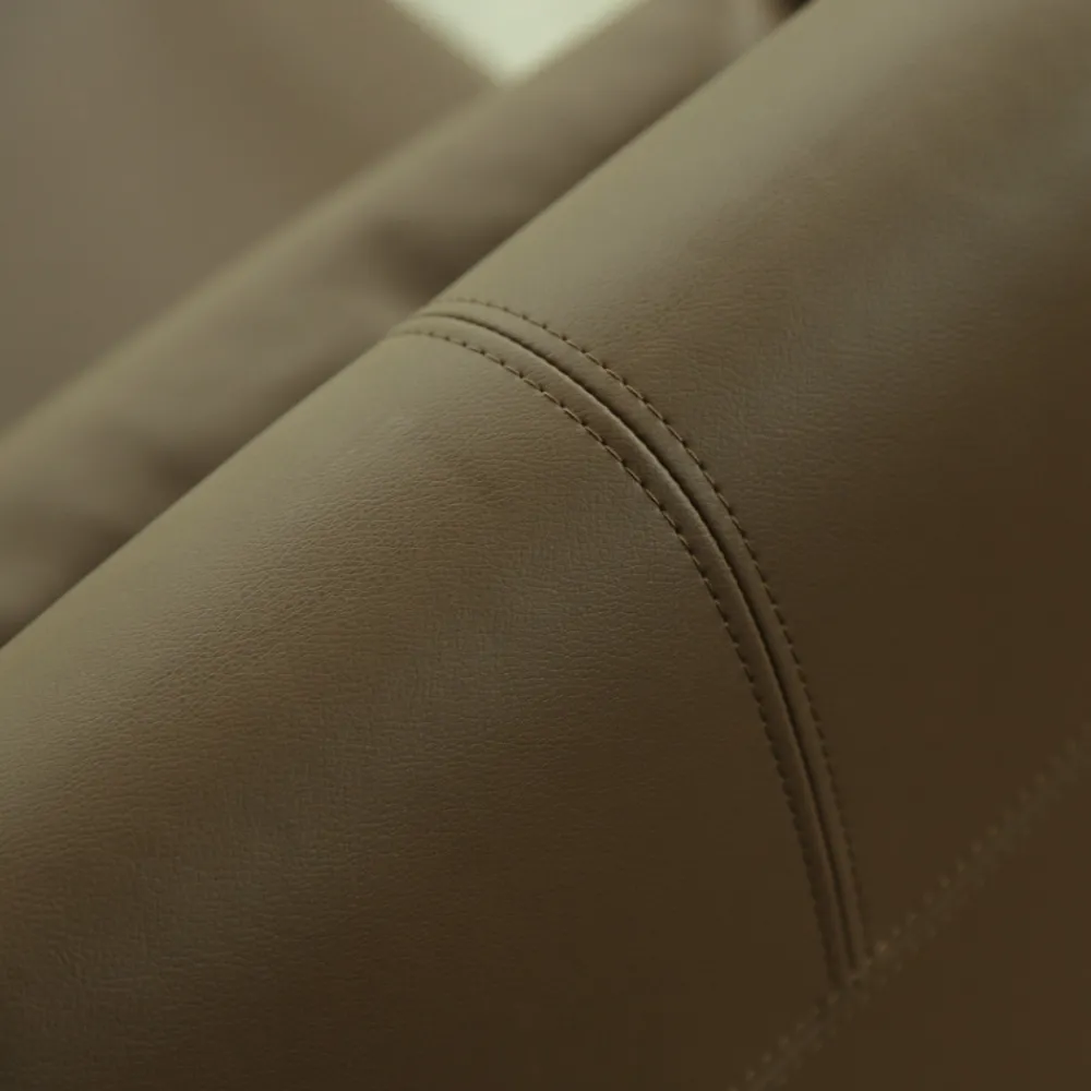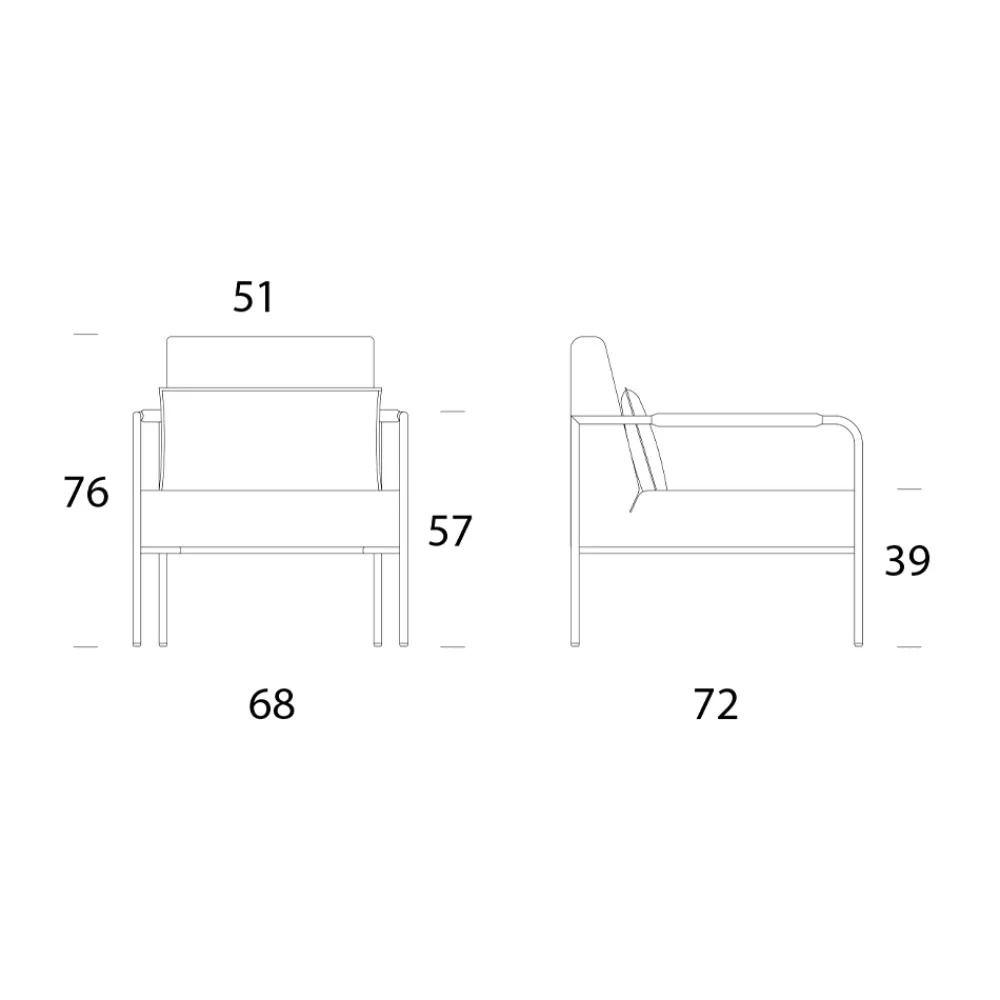 Sessel mit komfortablem und modernem Design. Gekennzeichnet durch eine breite Sitzfläche mit einem weichen und umhüllenden Lendenkissen, das exklusiven Komfort bietet. Das Metallgestell umfasst leicht gepolsterte Armlehnen und Sesselbeine. Die passenden Nähte sorgen für ein sauberes und abgestimmtes ästhetisches Erscheinungsbild. Dieses Design bietet ein Gleichgewicht zwischen Funktionalität und Stil und macht diesen Sessel für verschiedene Umgebungen geeignet, sowohl im Wohn- als auch im Gewerbebereich.