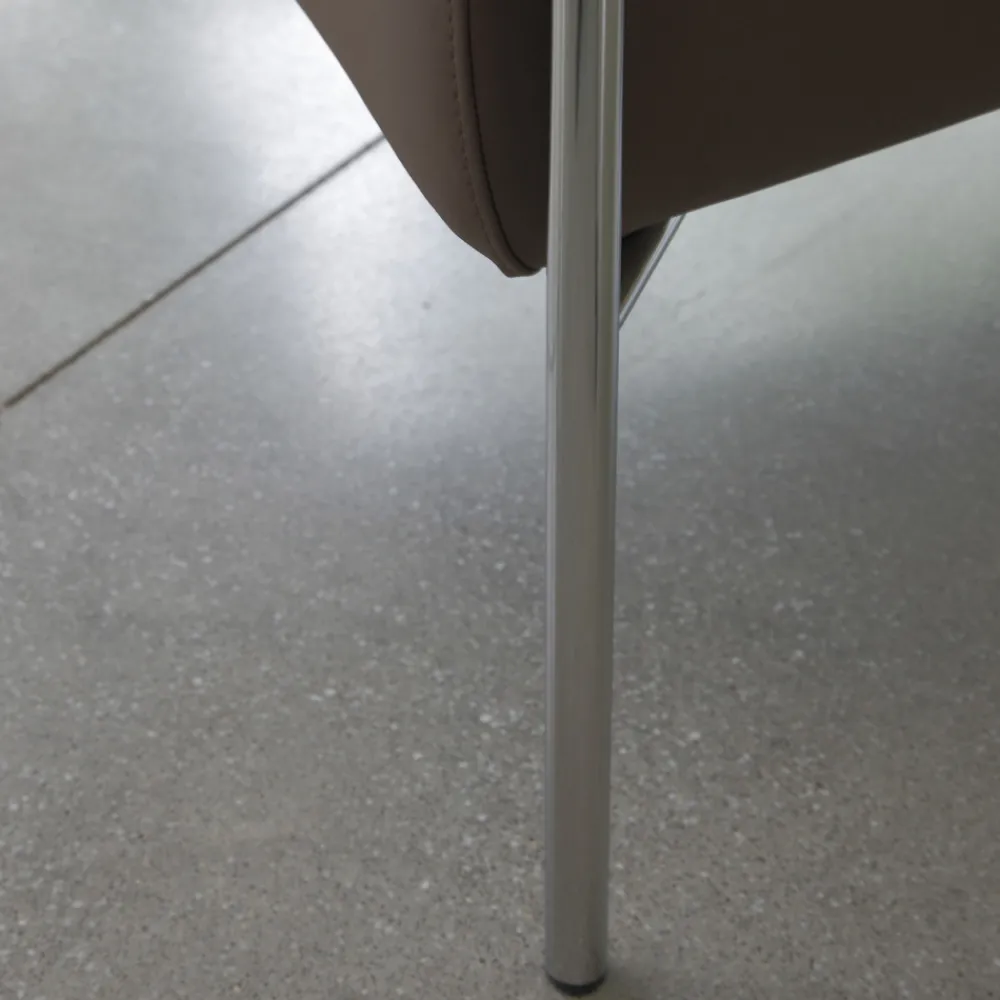 - Gestell aus poliertem Chrom, Sitz aus braunem Kunstleder
