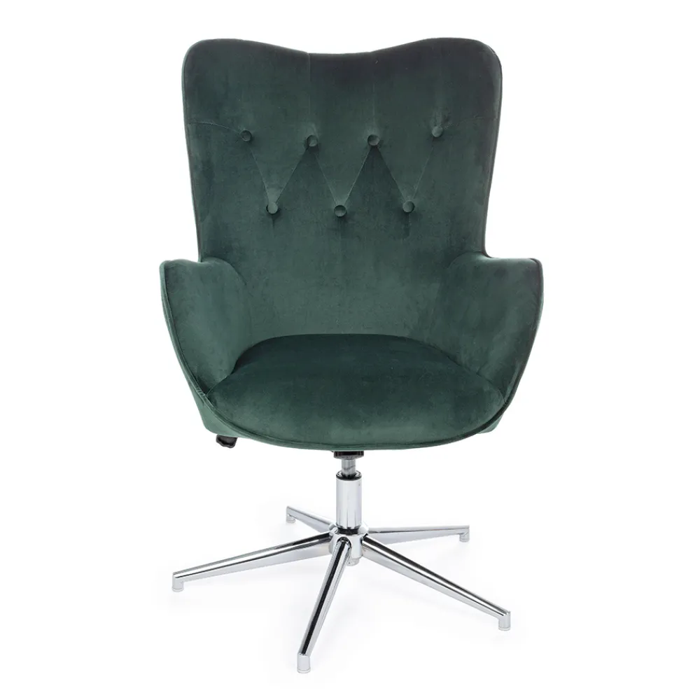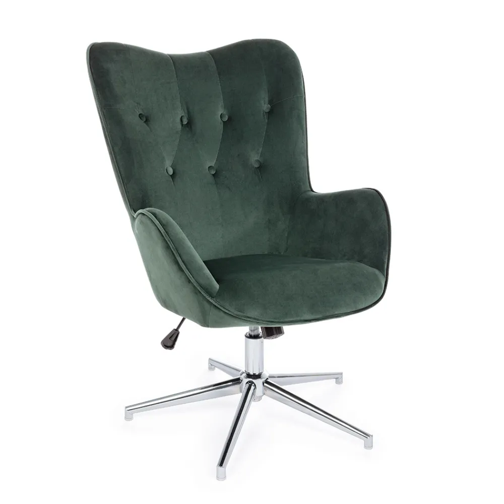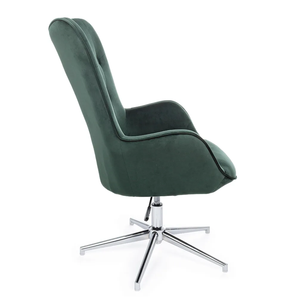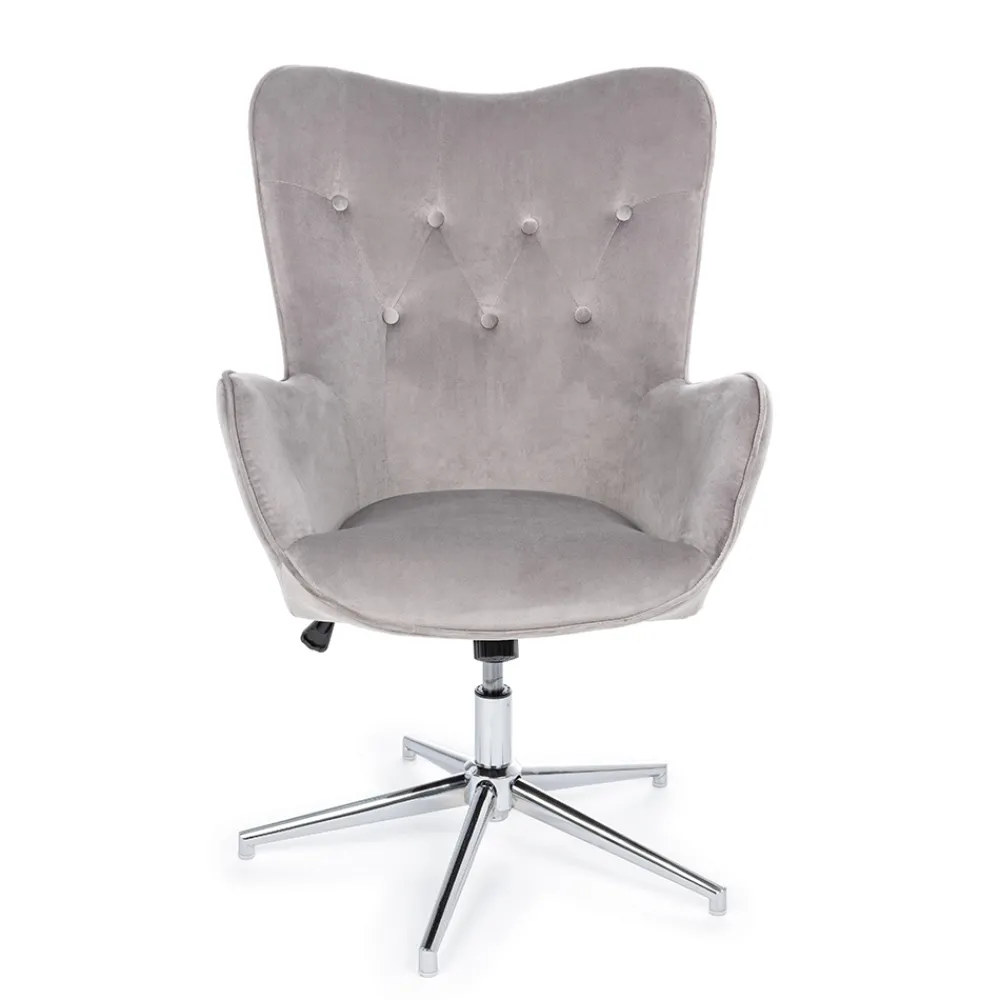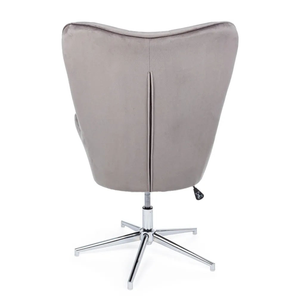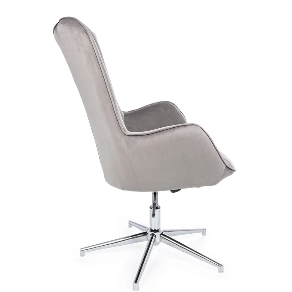 Höhenverstellbarer Sessel aus verchromtem Stahl und Sitz in Samtoptik, 2 Ausführungen.